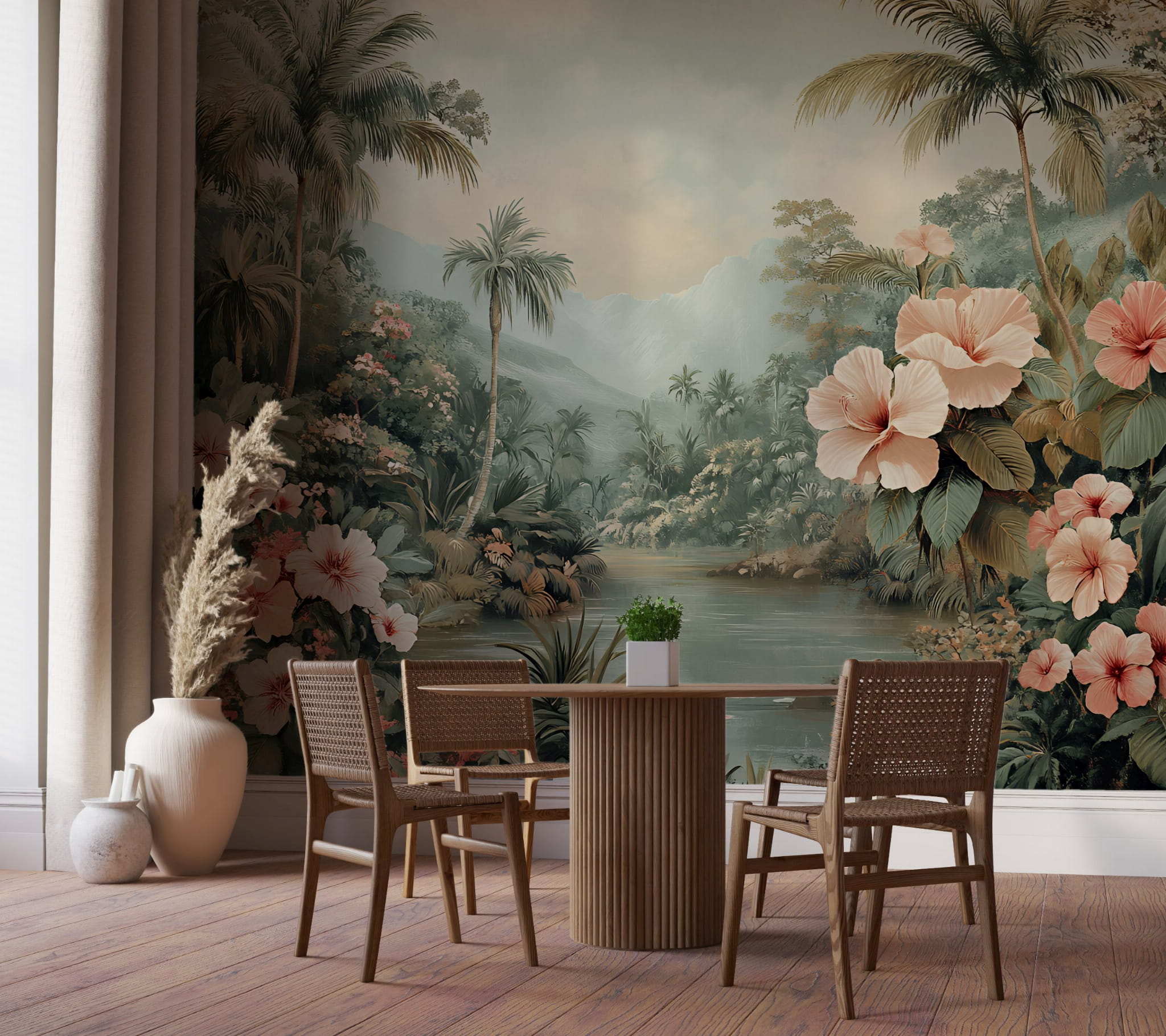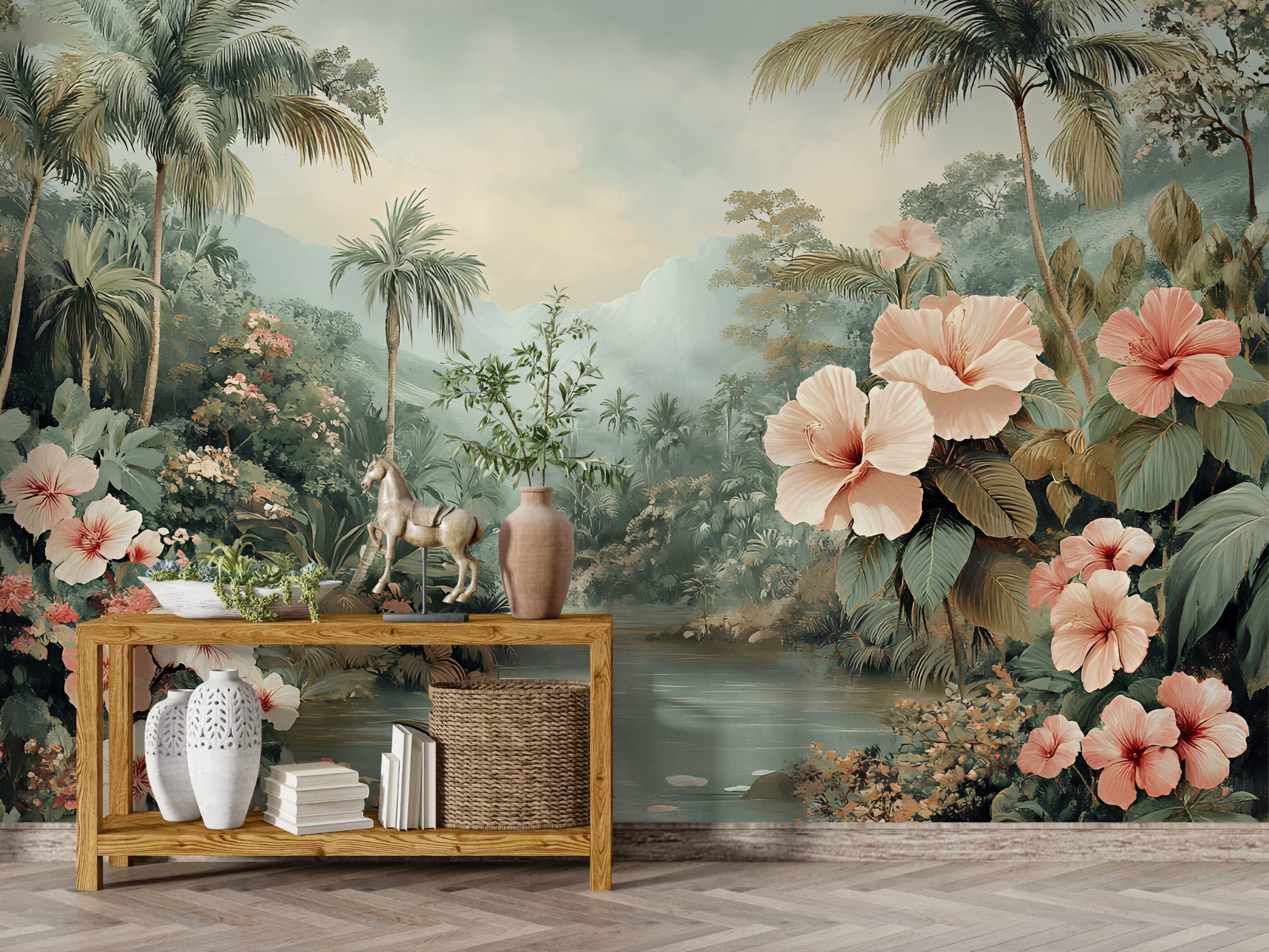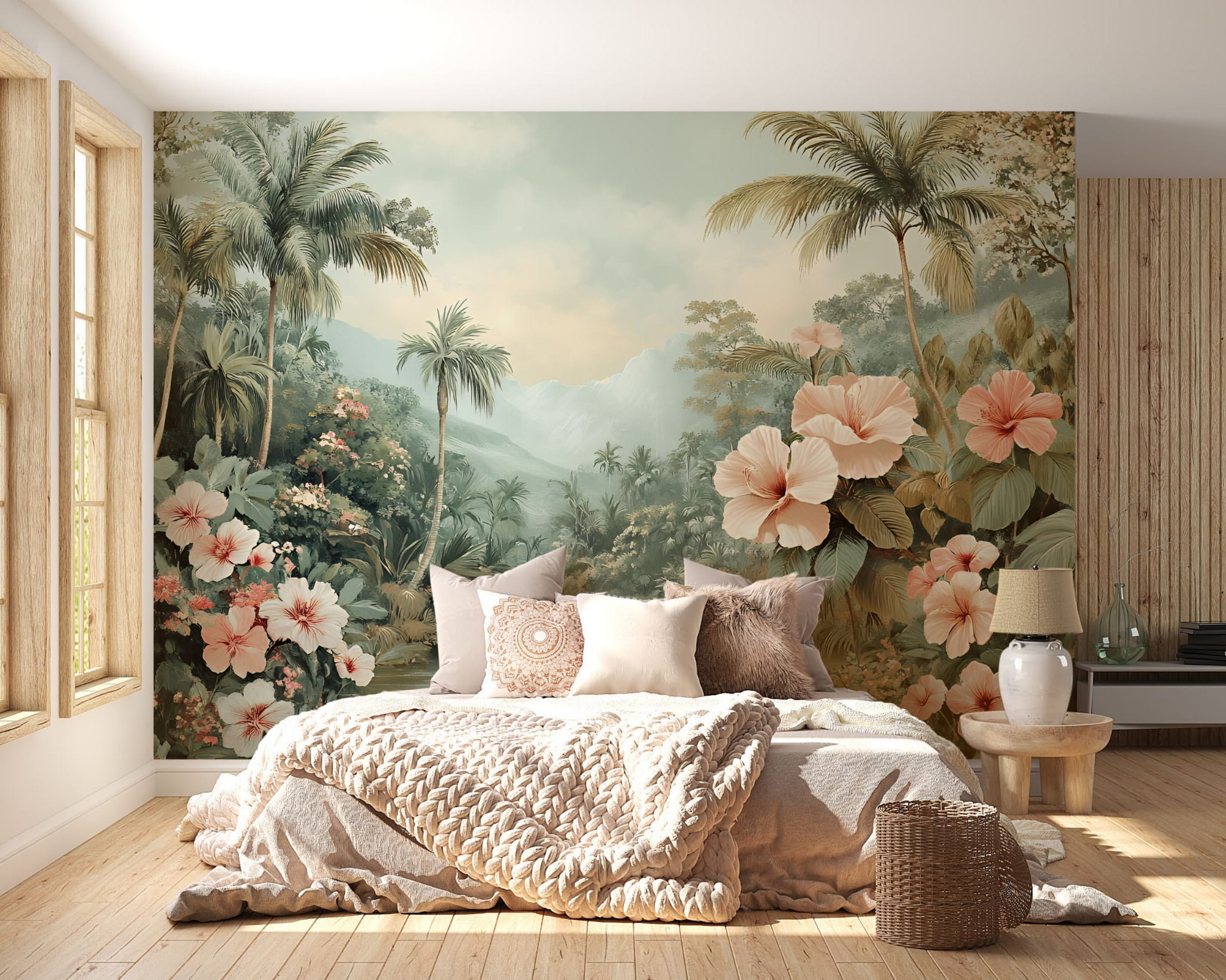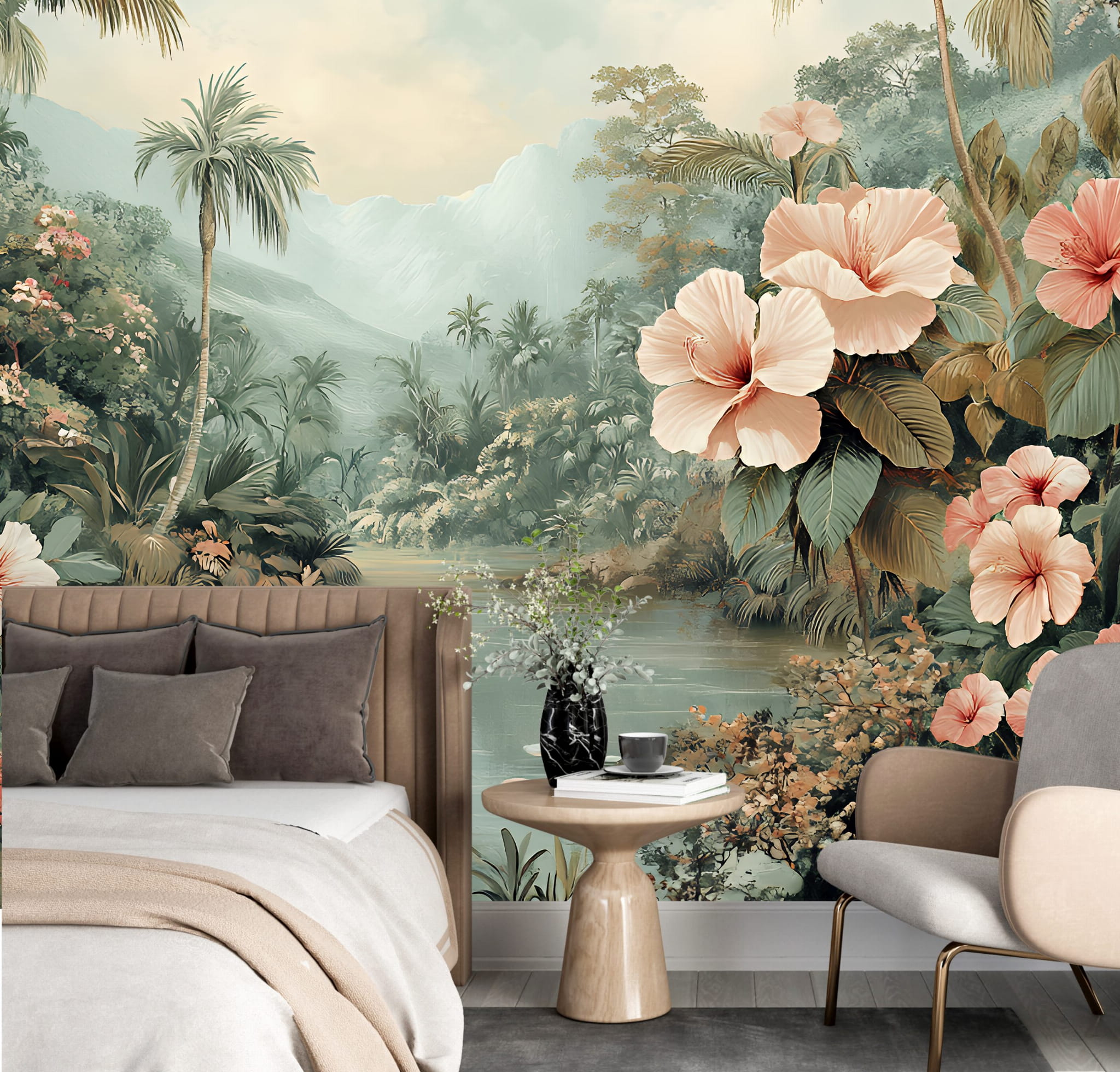 Fototapeta Tapeta Palmy Liście tropikalna abstrakcja romantyczna jungla, palmy , krajobraz, india