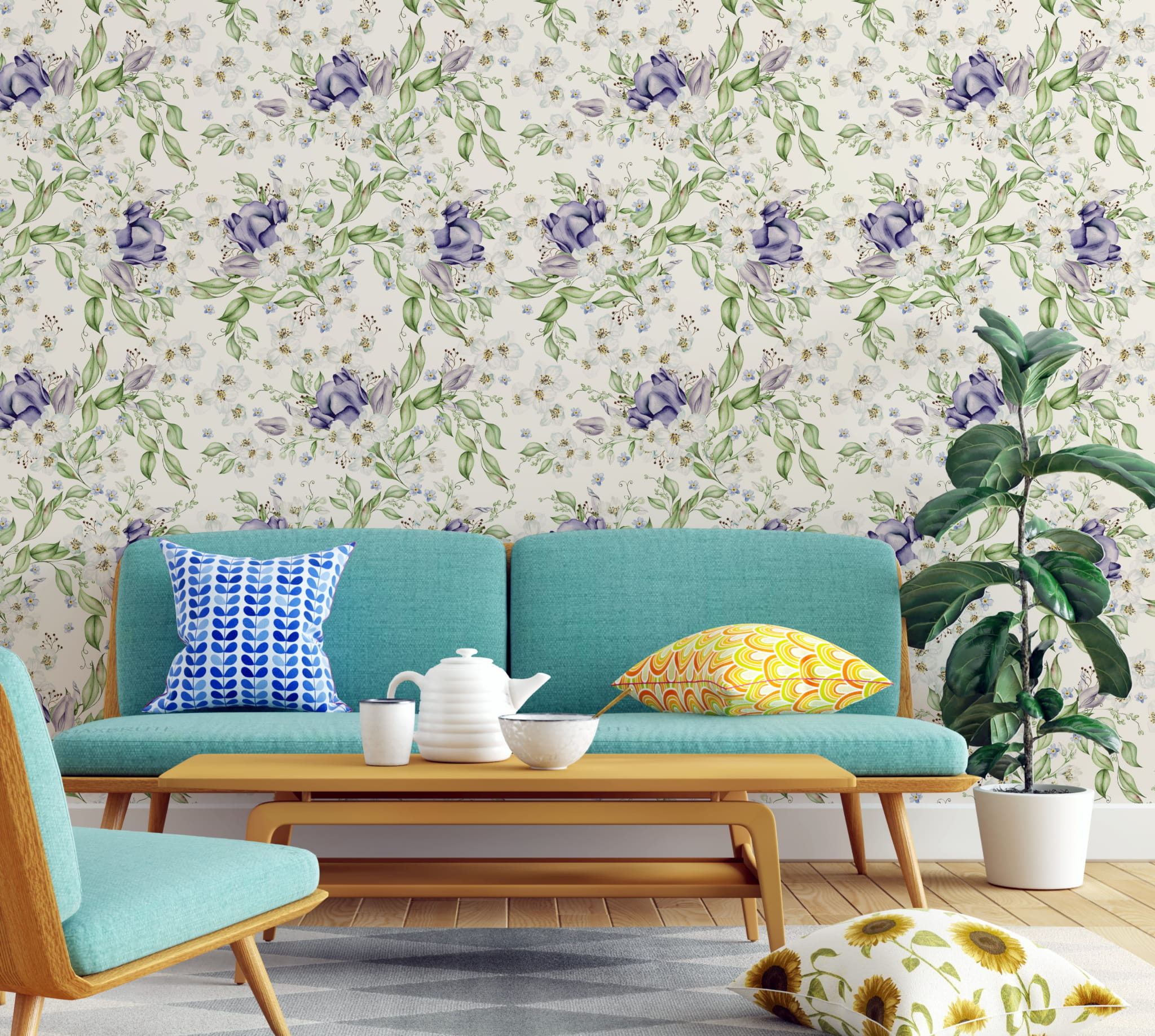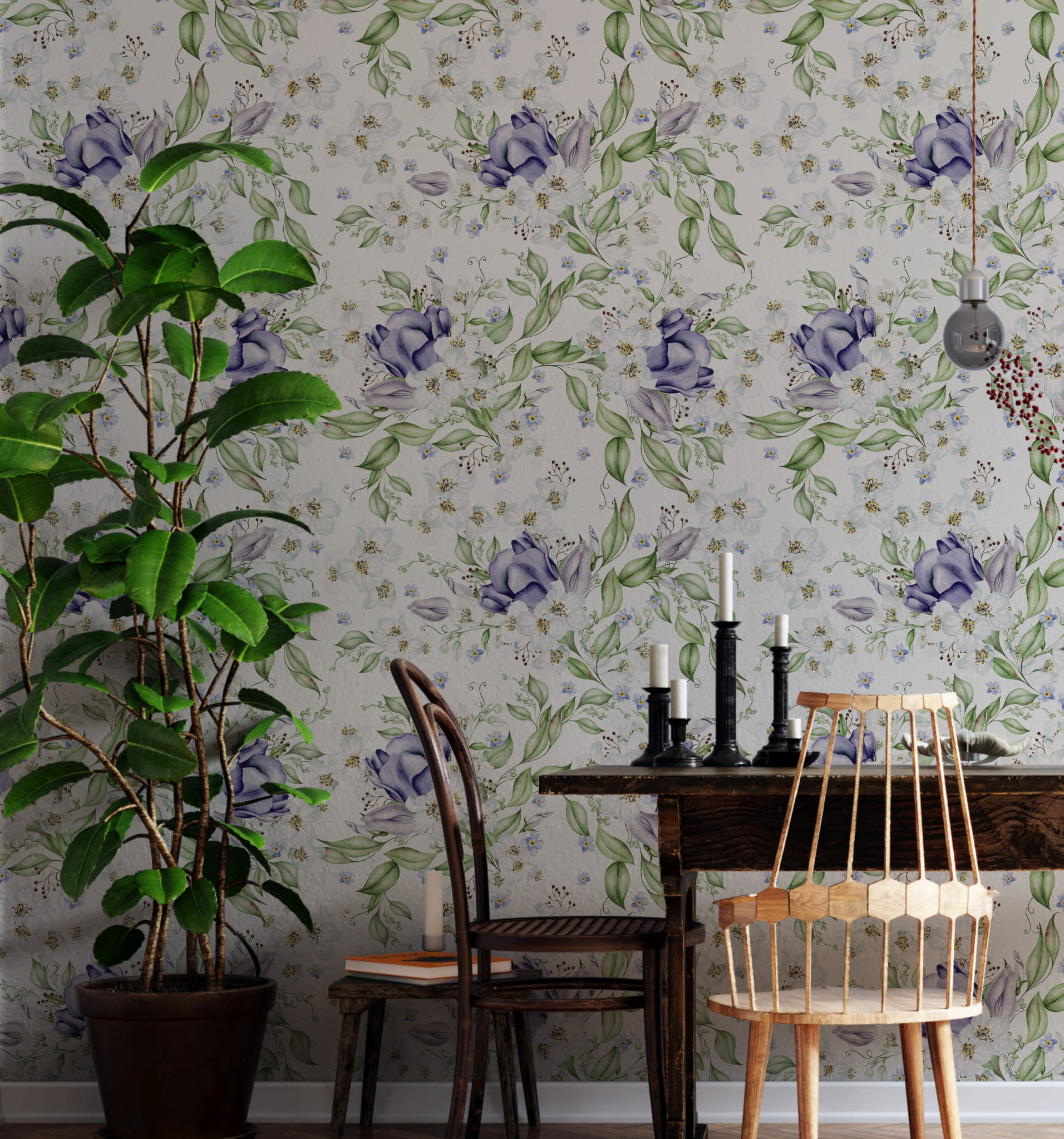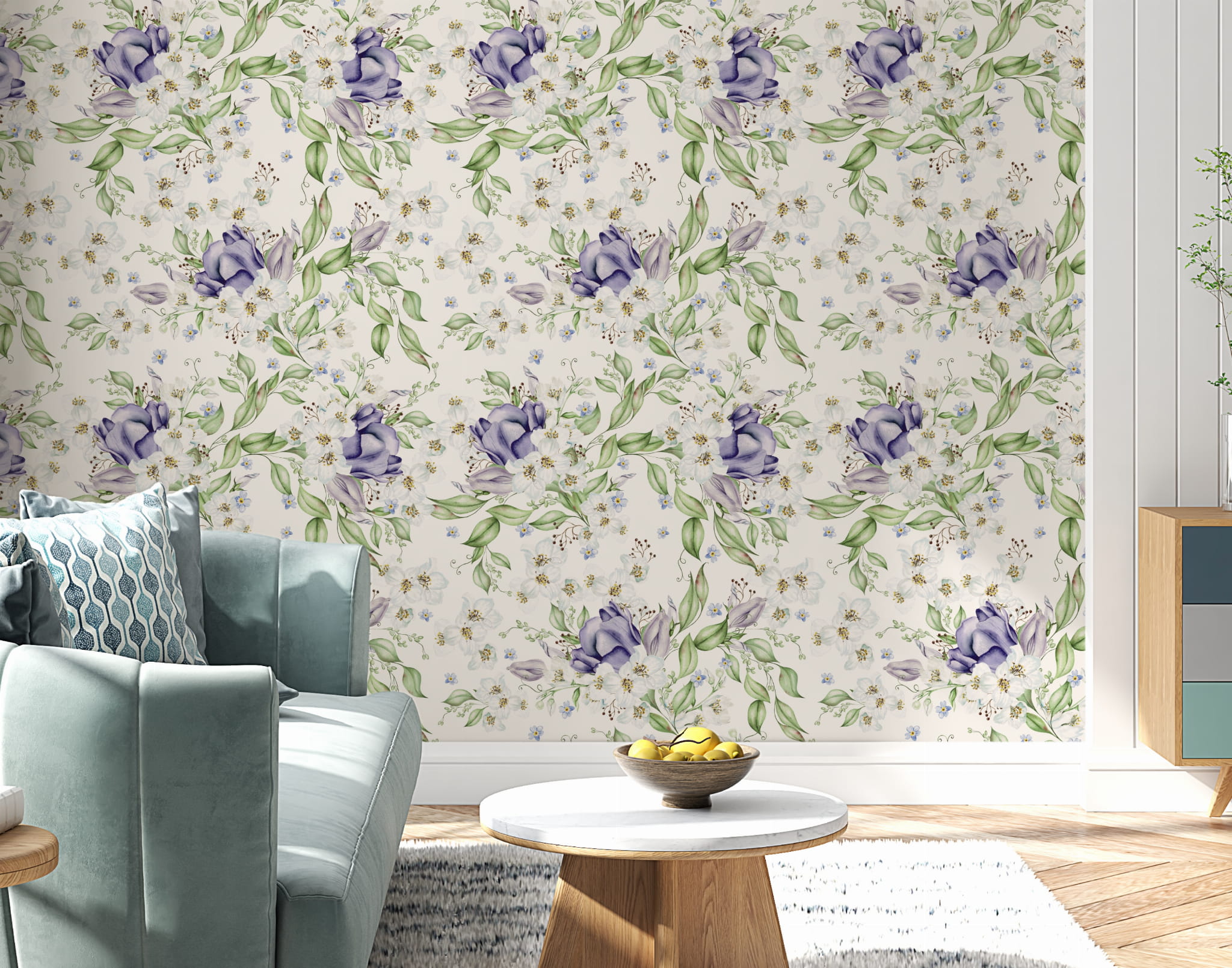 Fototapeta Tapeta fioletowe kwiaty Kwiaty polne Kwiaty w akwarelach Łąka boho Pastel Dekoracja ścienna FTS52