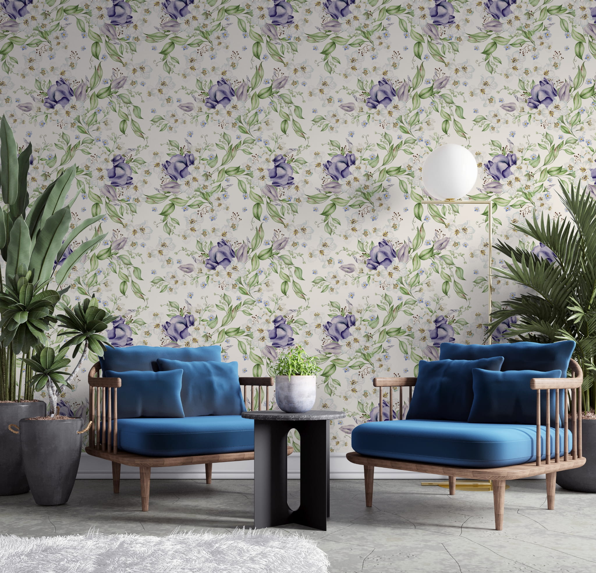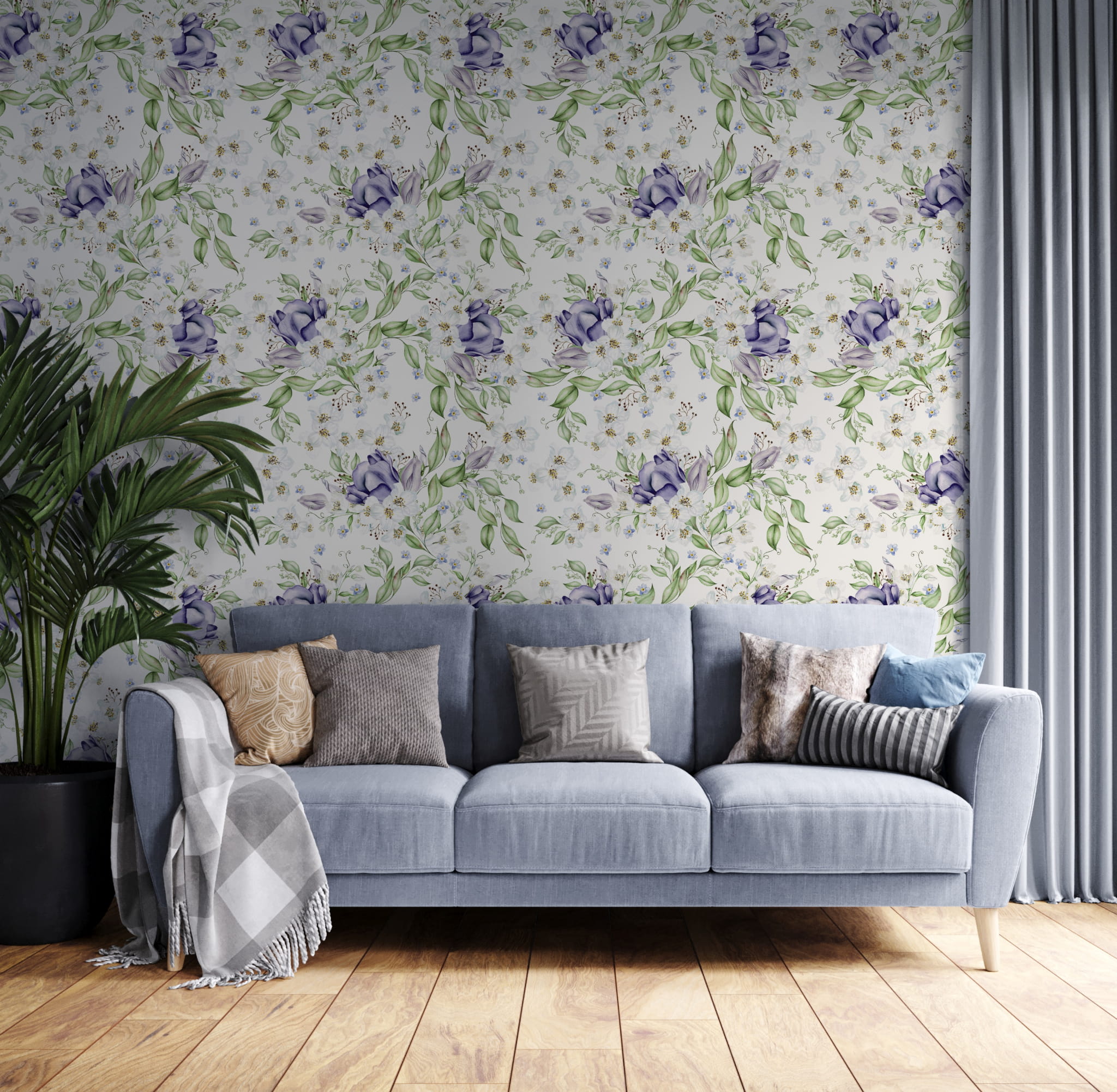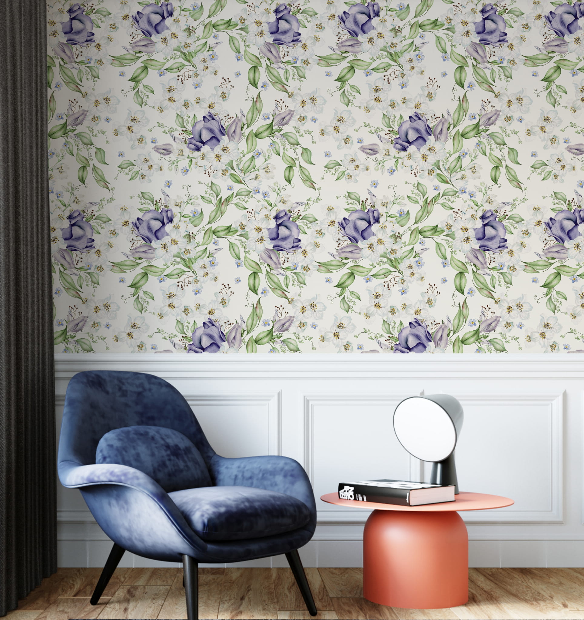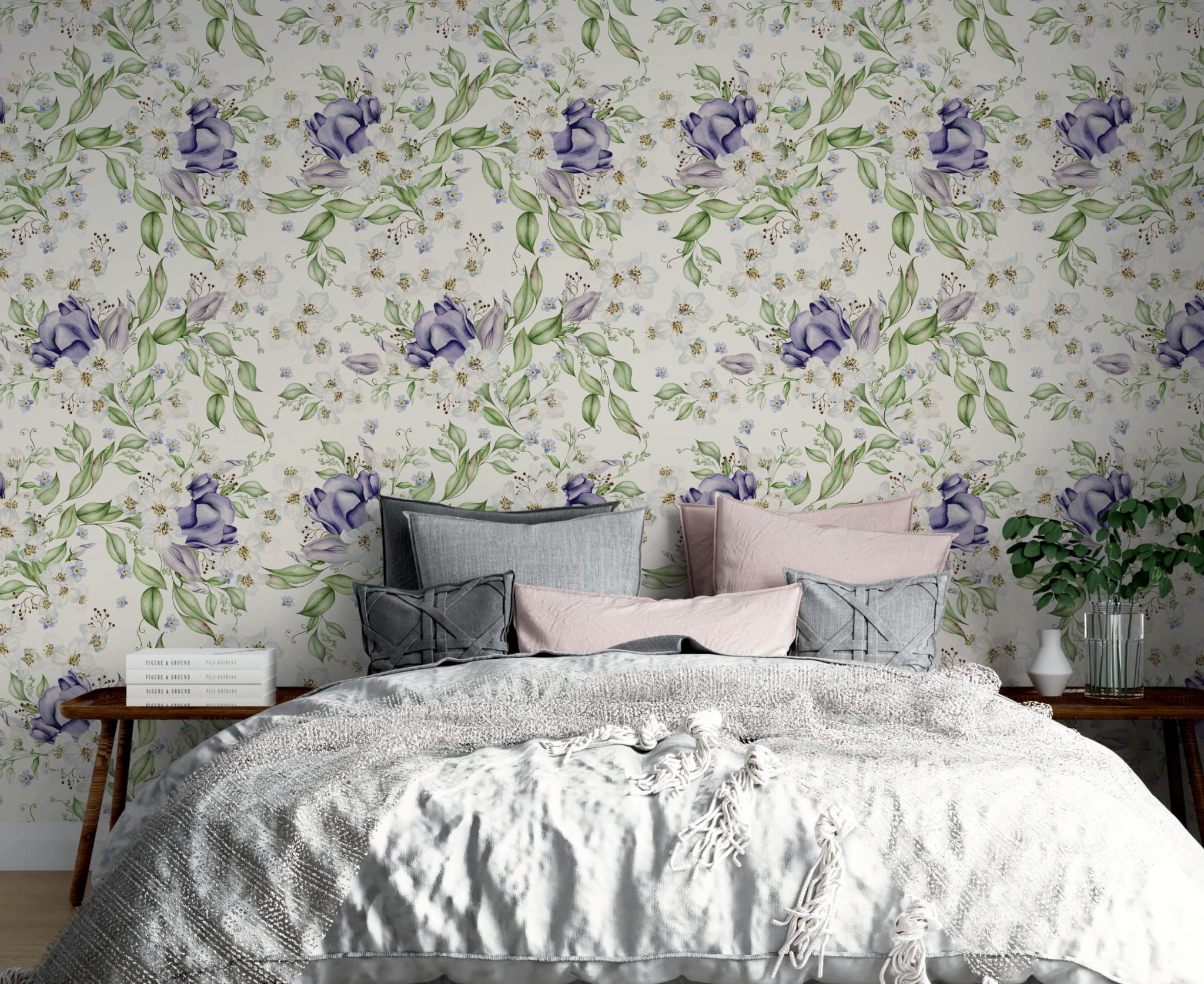 Fototapeta Tapeta fioletowe kwiaty Kwiaty polne Kwiaty w akwarelach Łąka boho Pastel Dekoracja ścienna FTS52