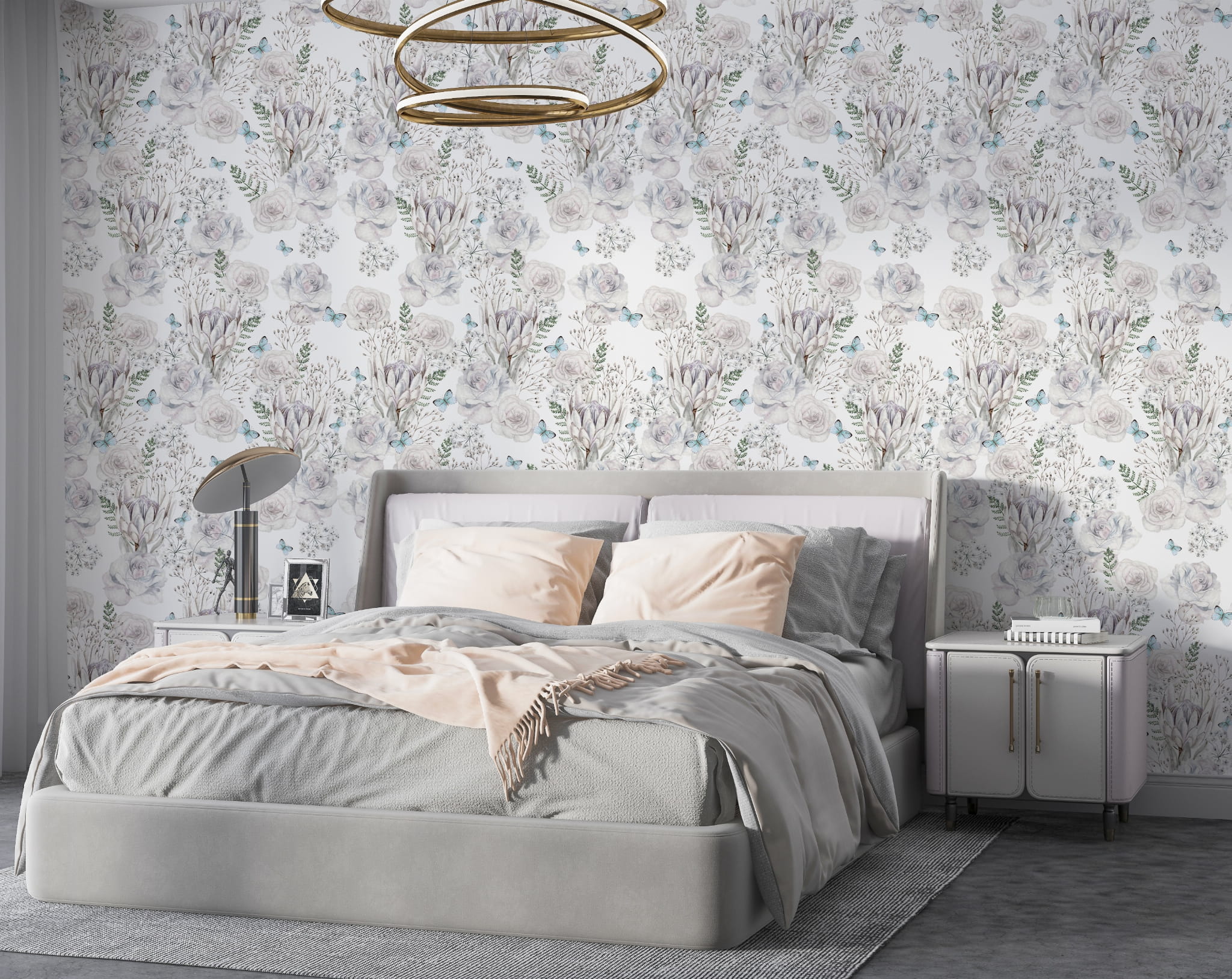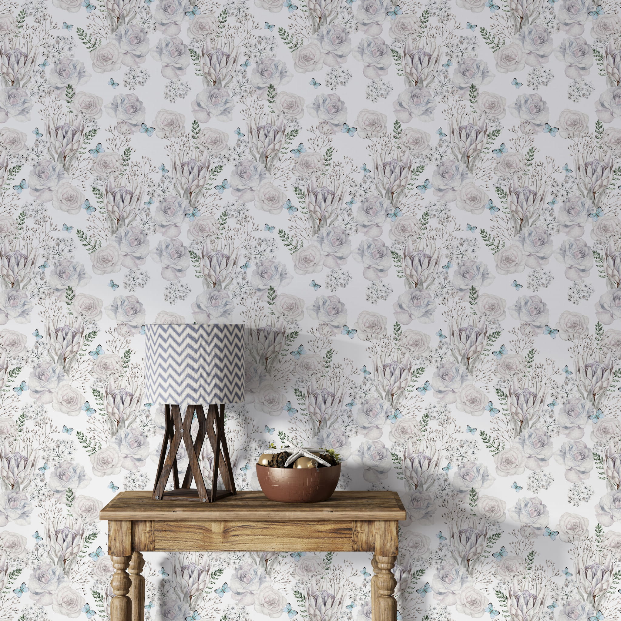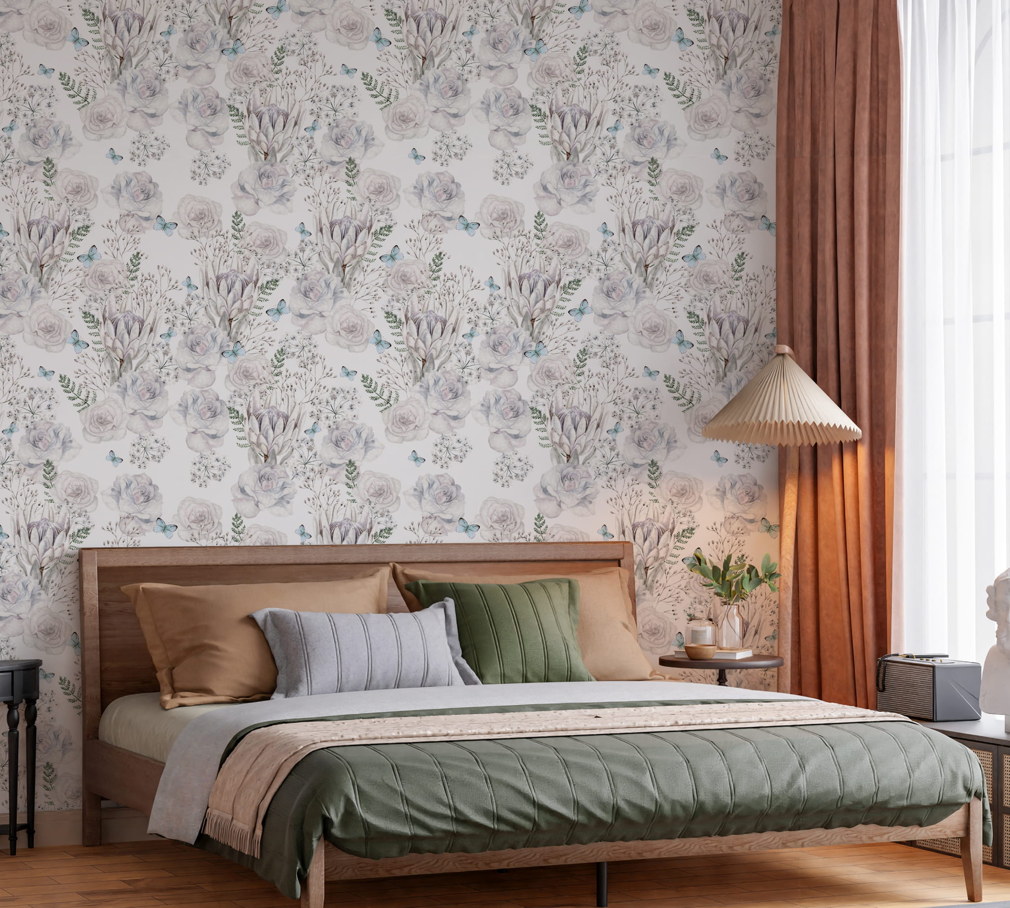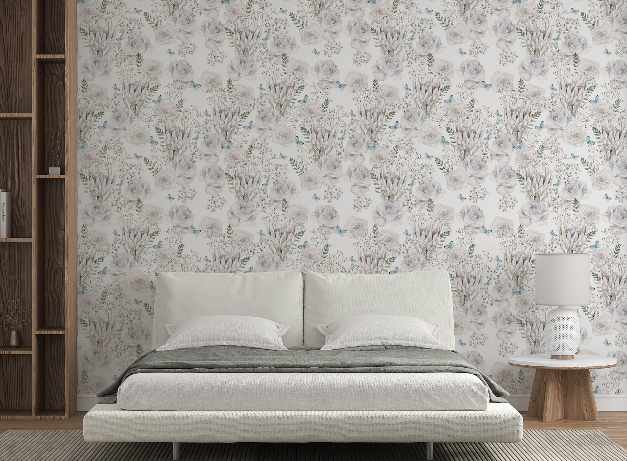 Fototapeta Tapeta jasne kwiaty, róże , Kwiaty polne Kwiaty w akwarelach Łąka boho Pastel Dekoracja ścienna FTS53