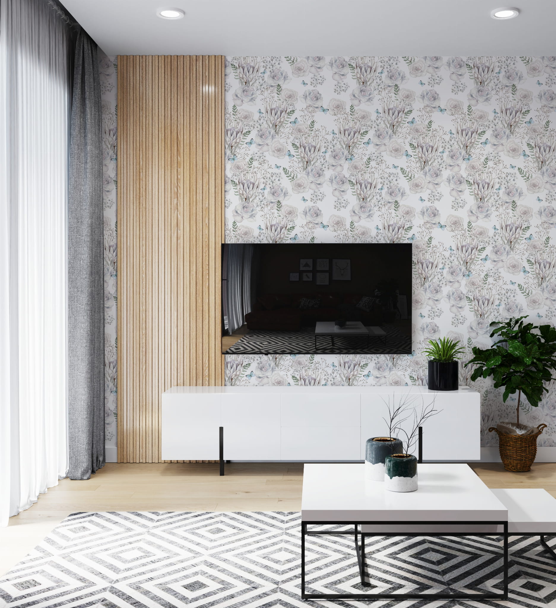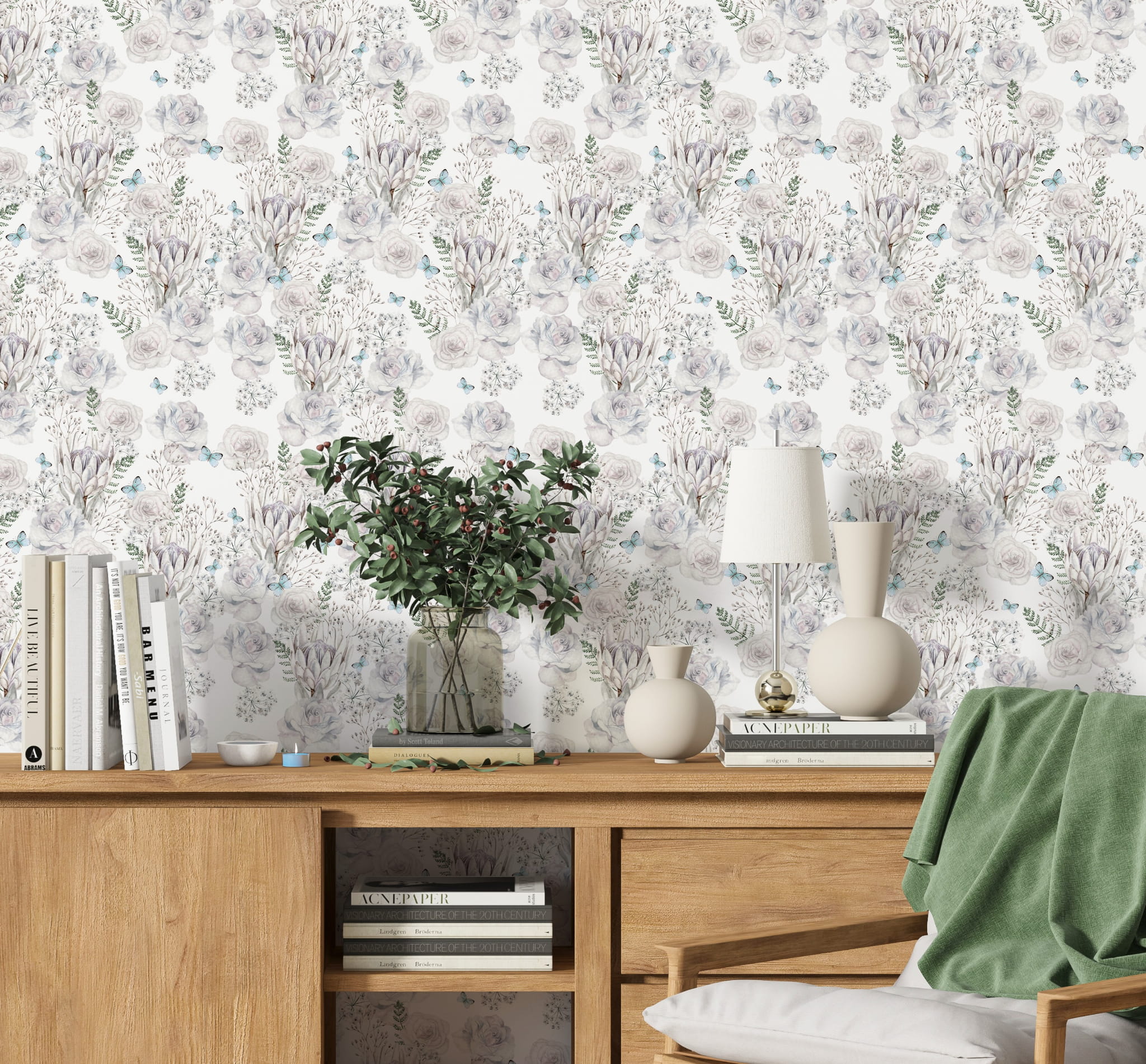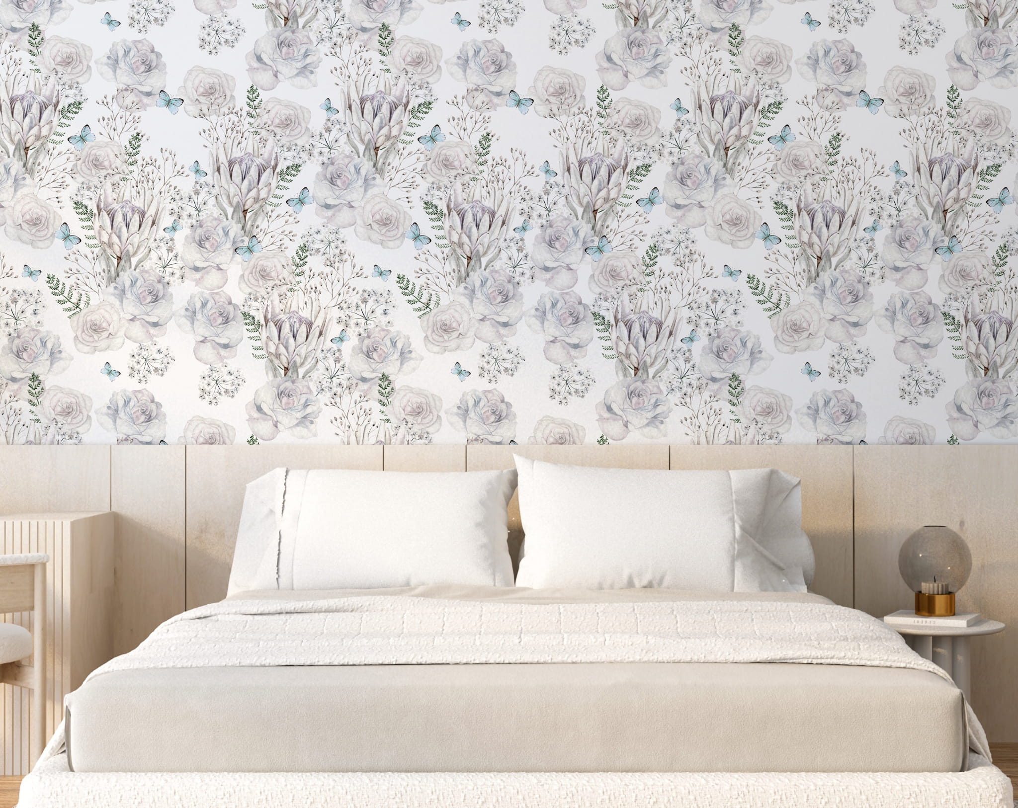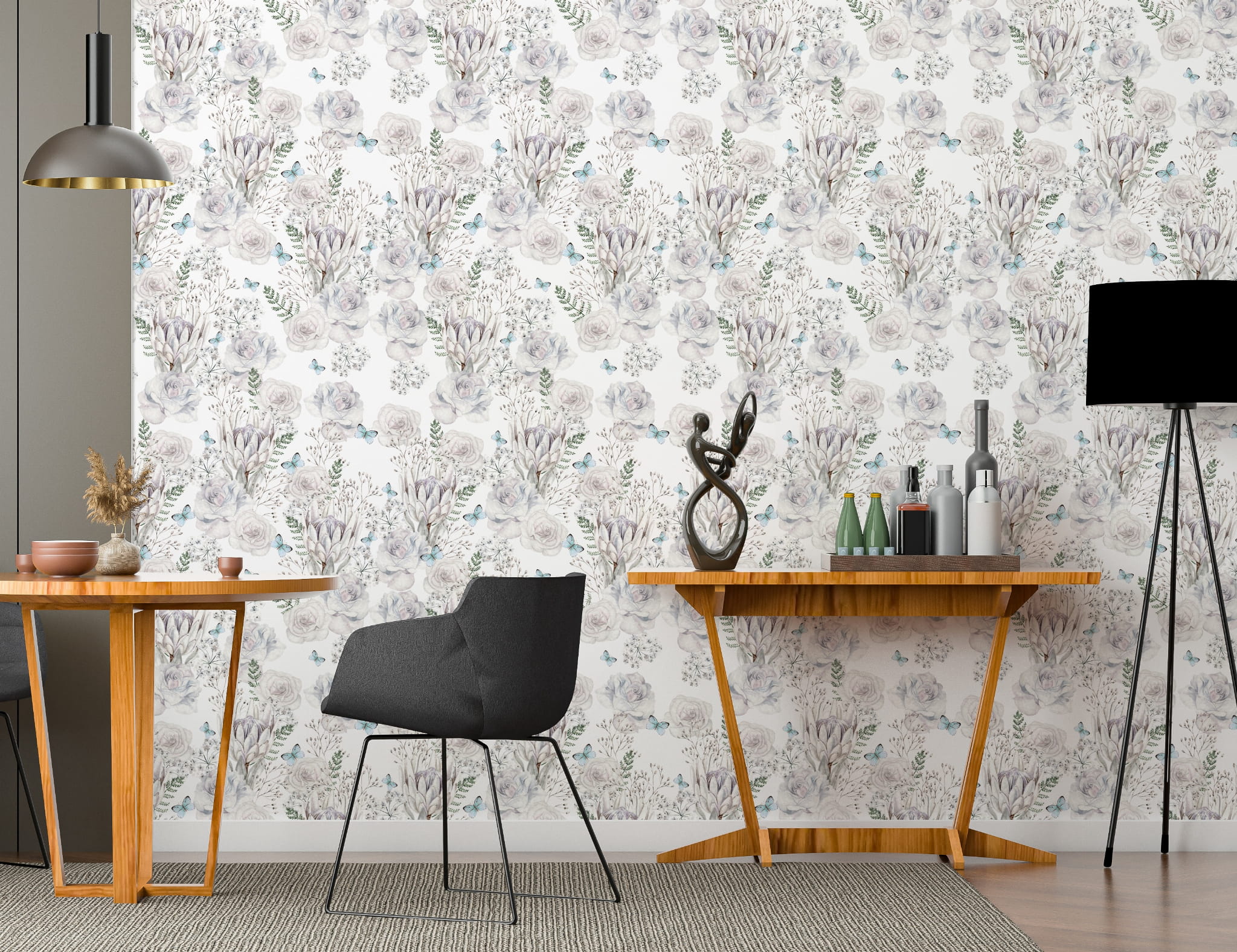 Fototapeta Tapeta jasne kwiaty, róże , Kwiaty polne Kwiaty w akwarelach Łąka boho Pastel Dekoracja ścienna FTS53