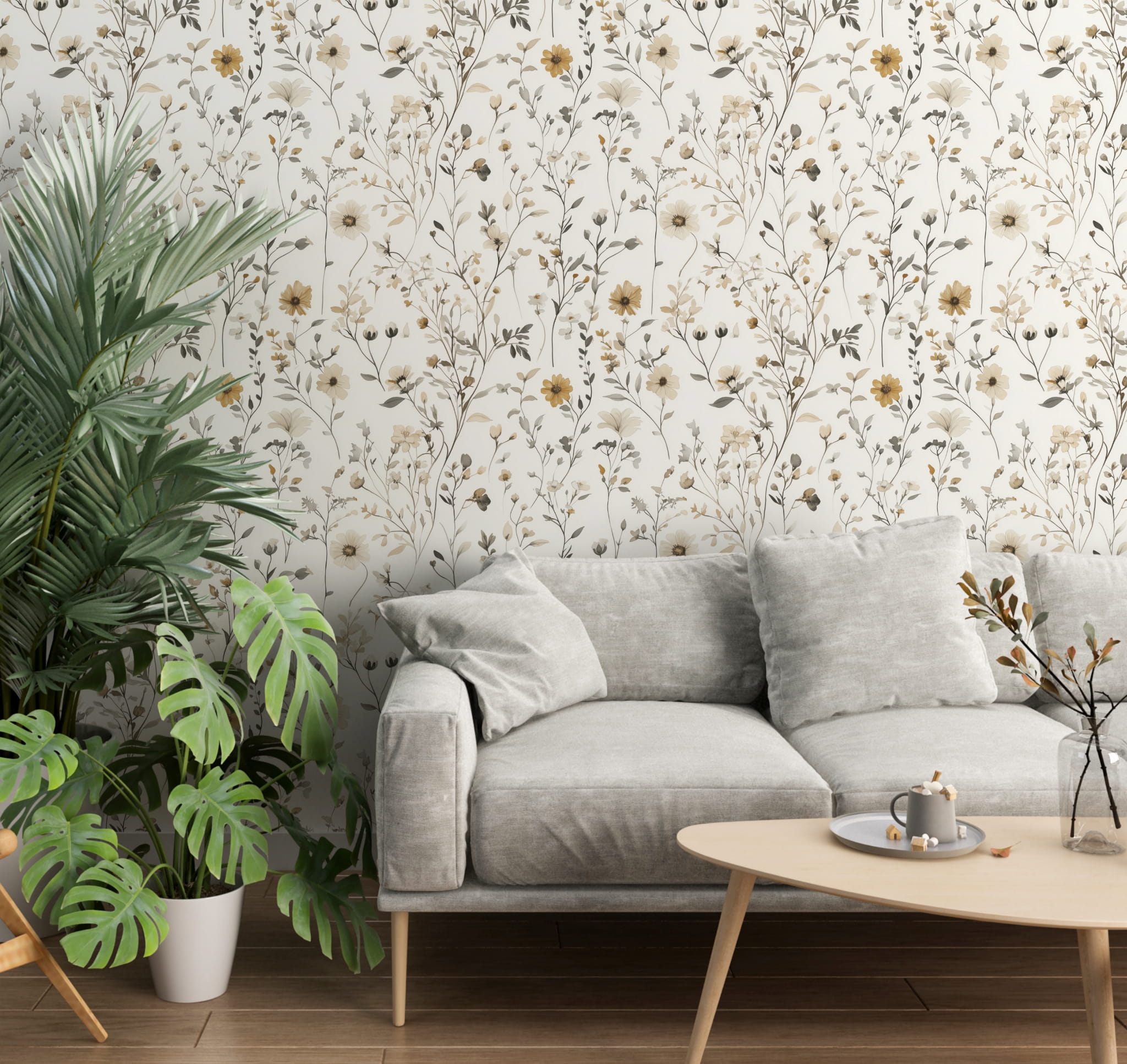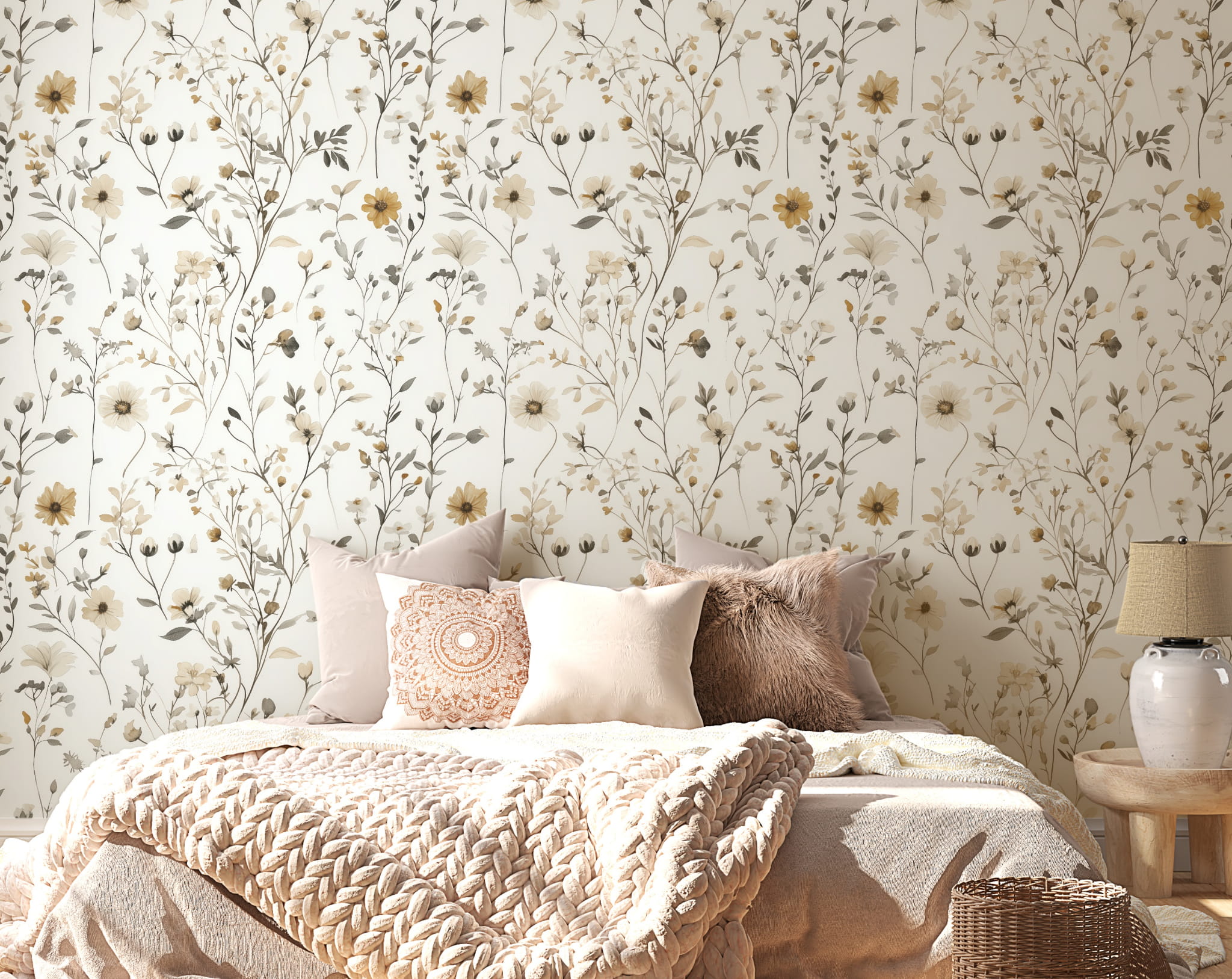 Fototapeta Tapeta kwiaty Kwiaty polne Kwiaty w akwarelach Łąka boho łąka złota Pastel Dekoracja ścienna FTS44outlet 310x260cm