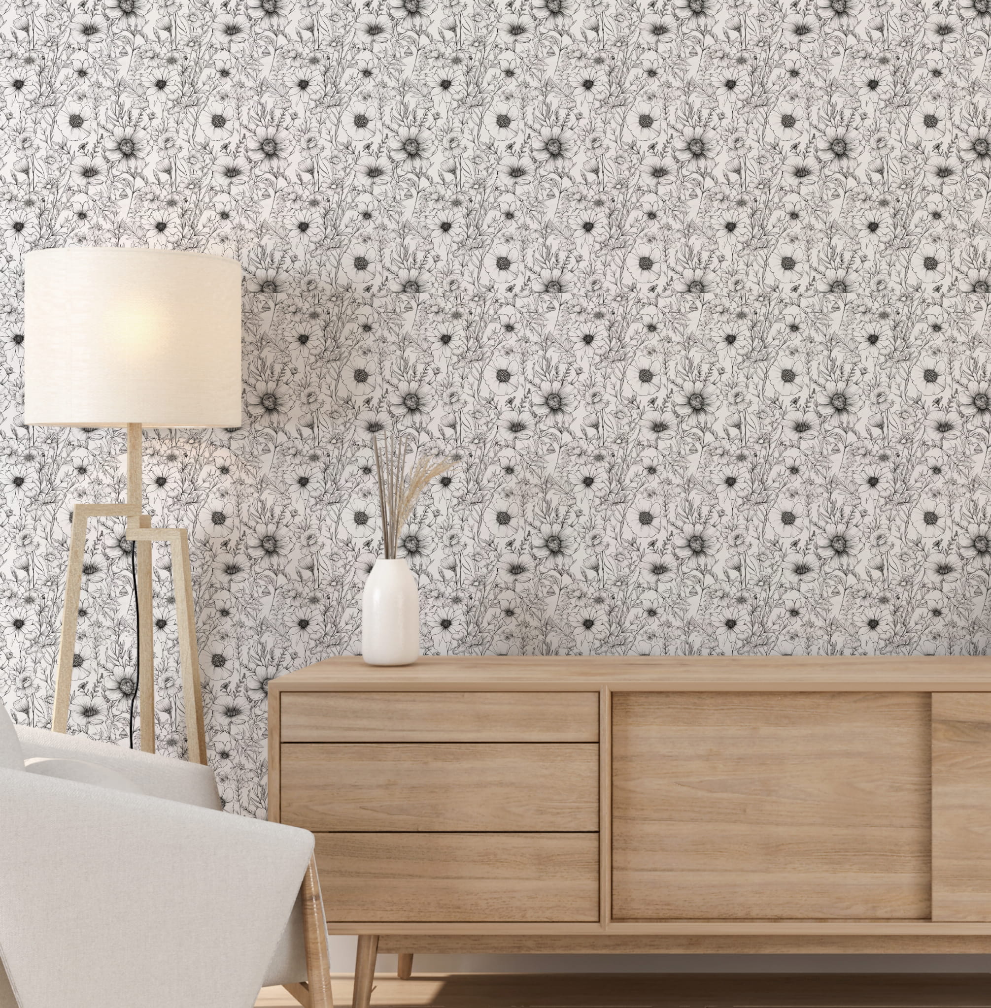 Fototapeta Tapeta kwiaty Kwiaty polne Kwiaty w akwarelach Łąka boho łąka złota Pastel Dekoracja ściennaFTS41