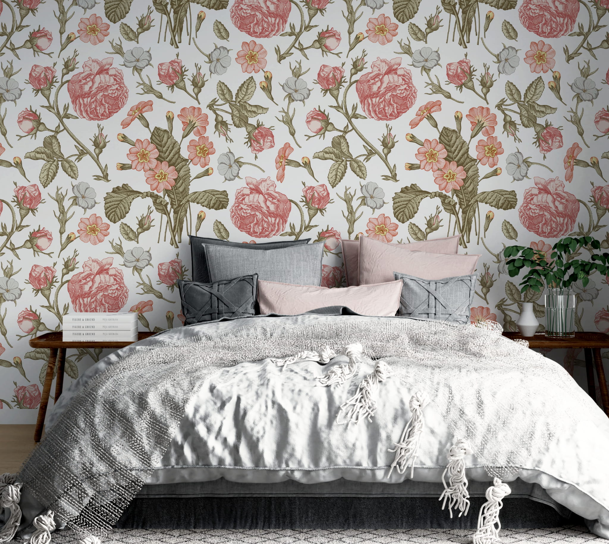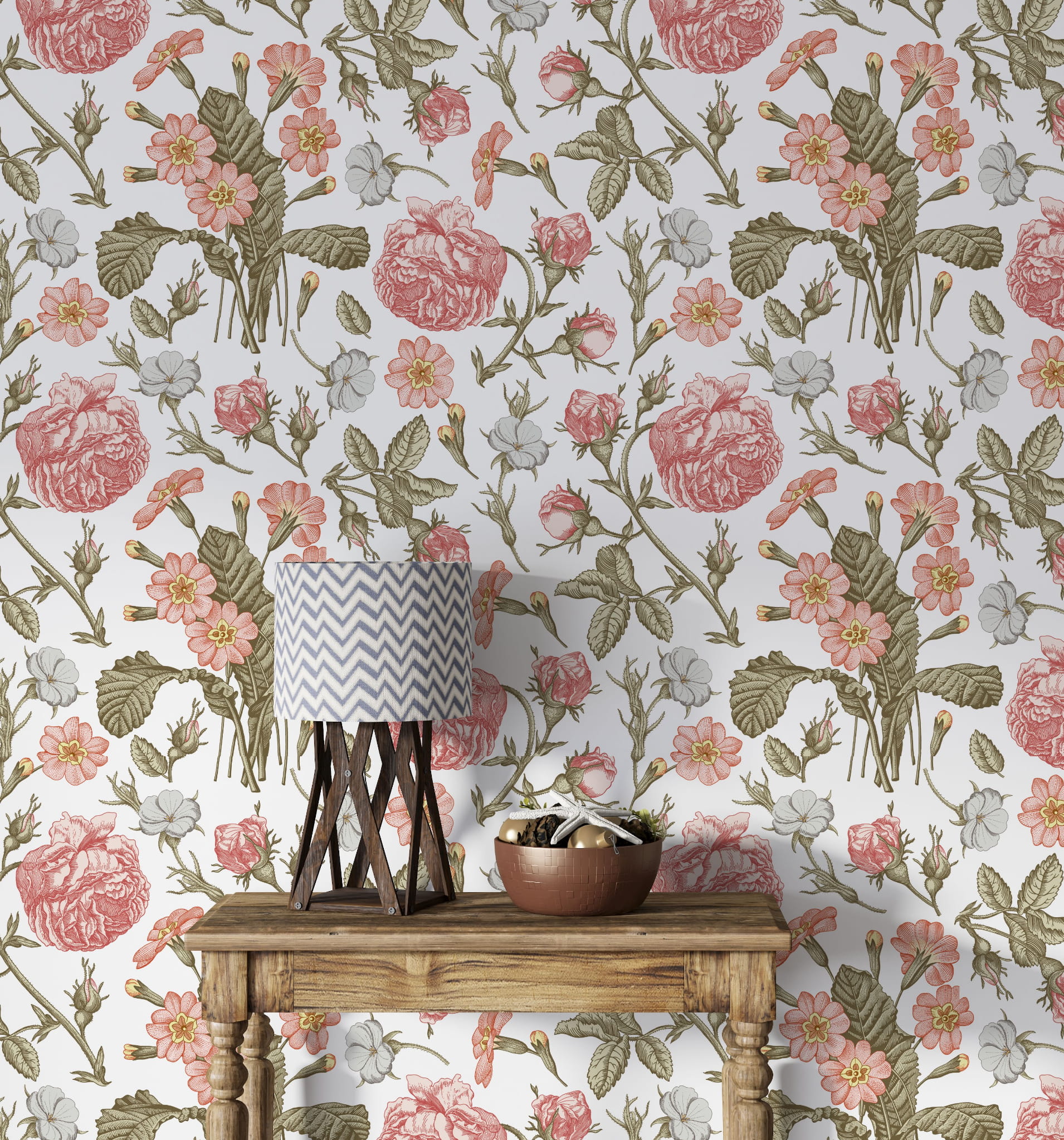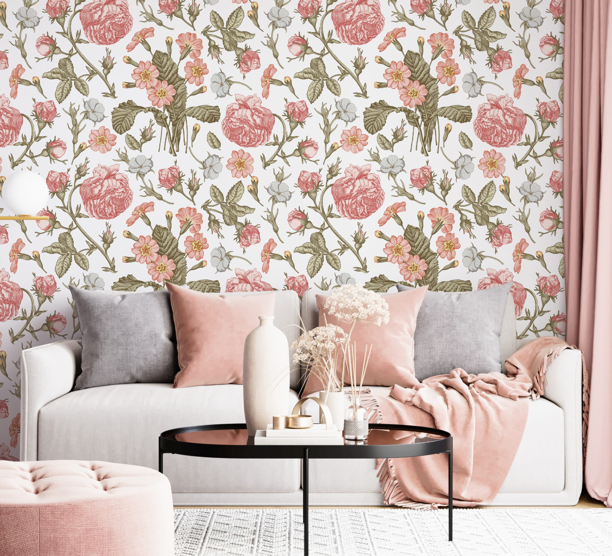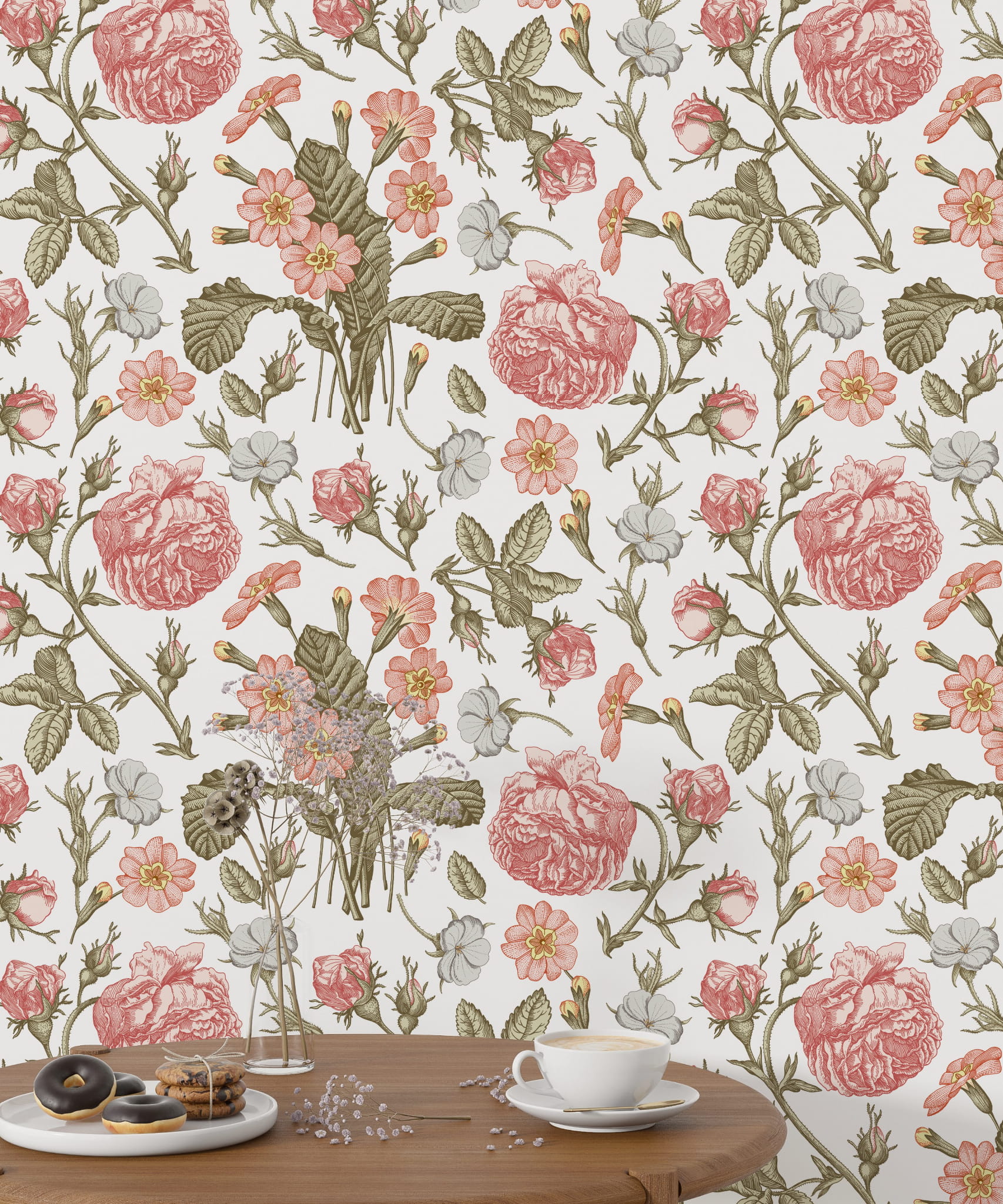 Fototapeta Tapeta kwiaty kwiatowa różowe pastelowe styl wiktoriański ALEXA