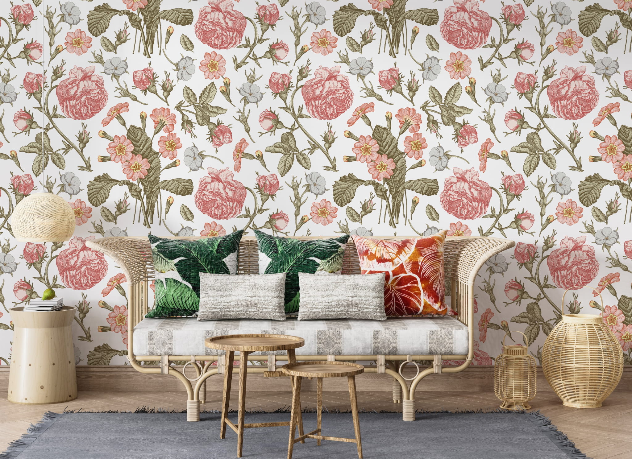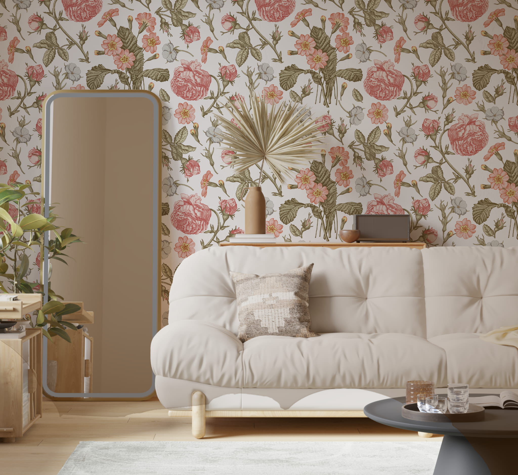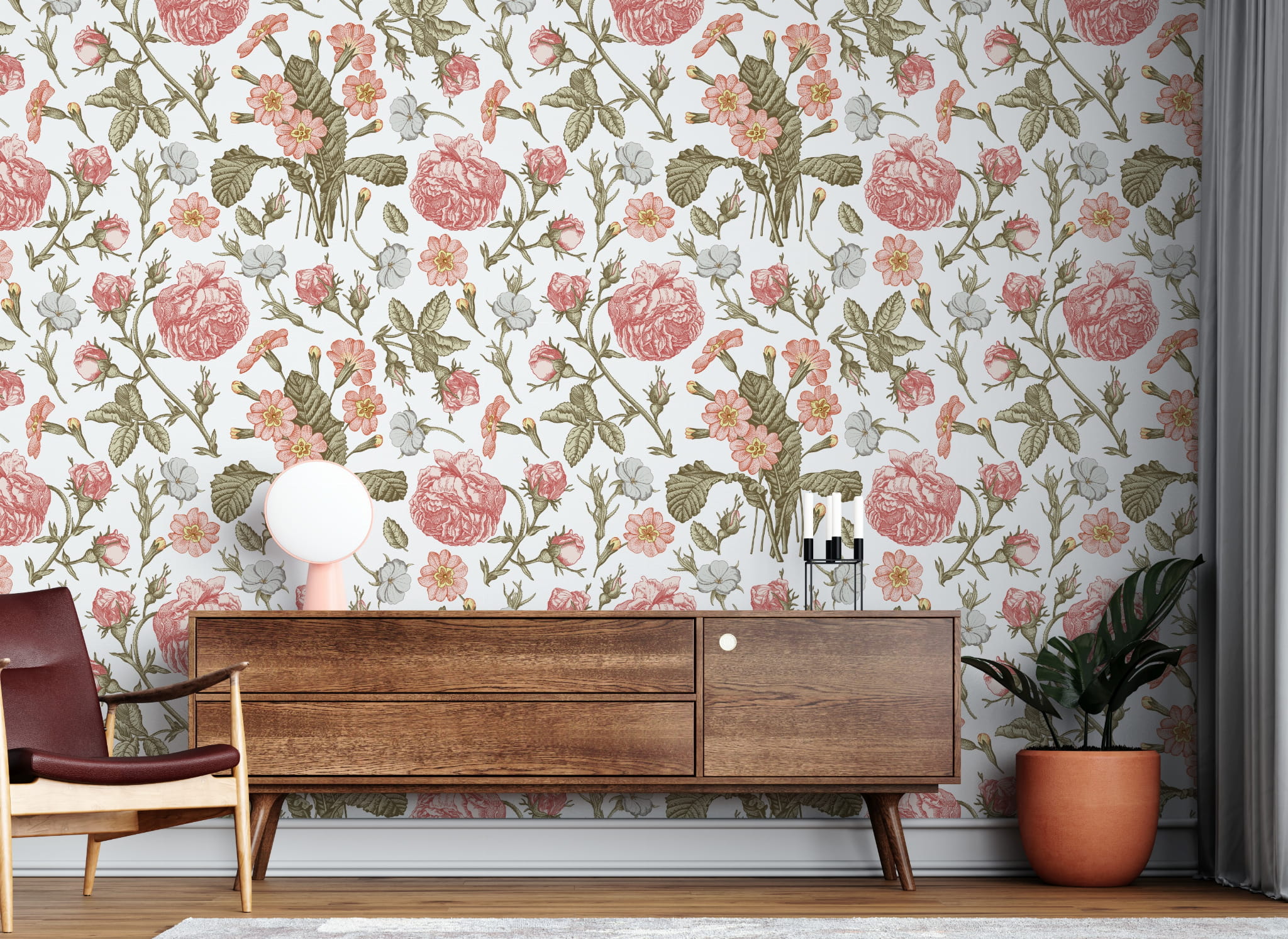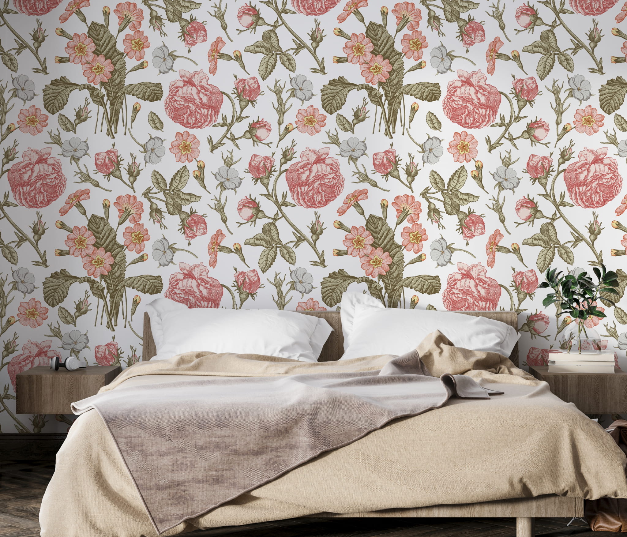 Fototapeta Tapeta kwiaty kwiatowa różowe pastelowe styl wiktoriański ALEXA