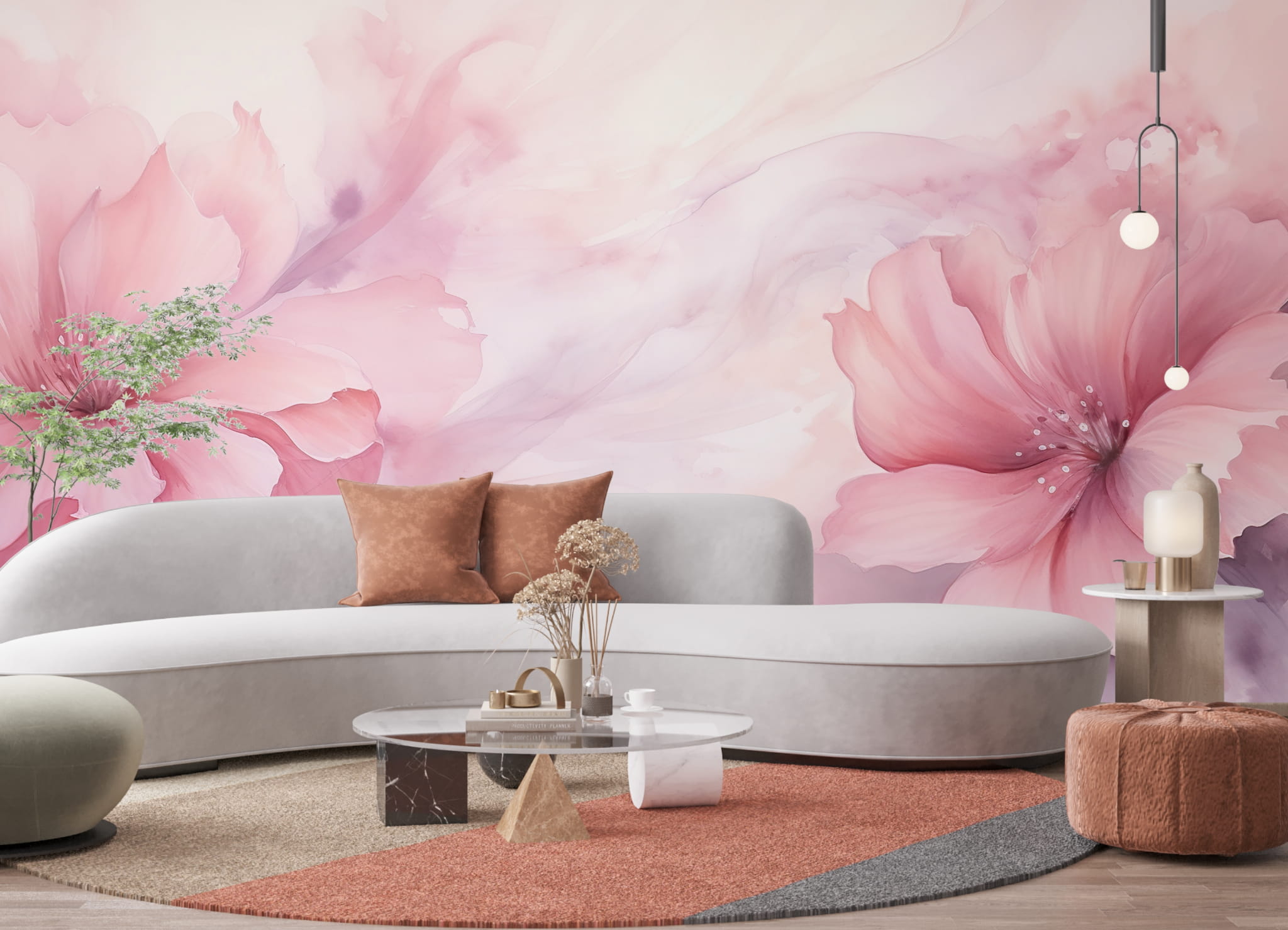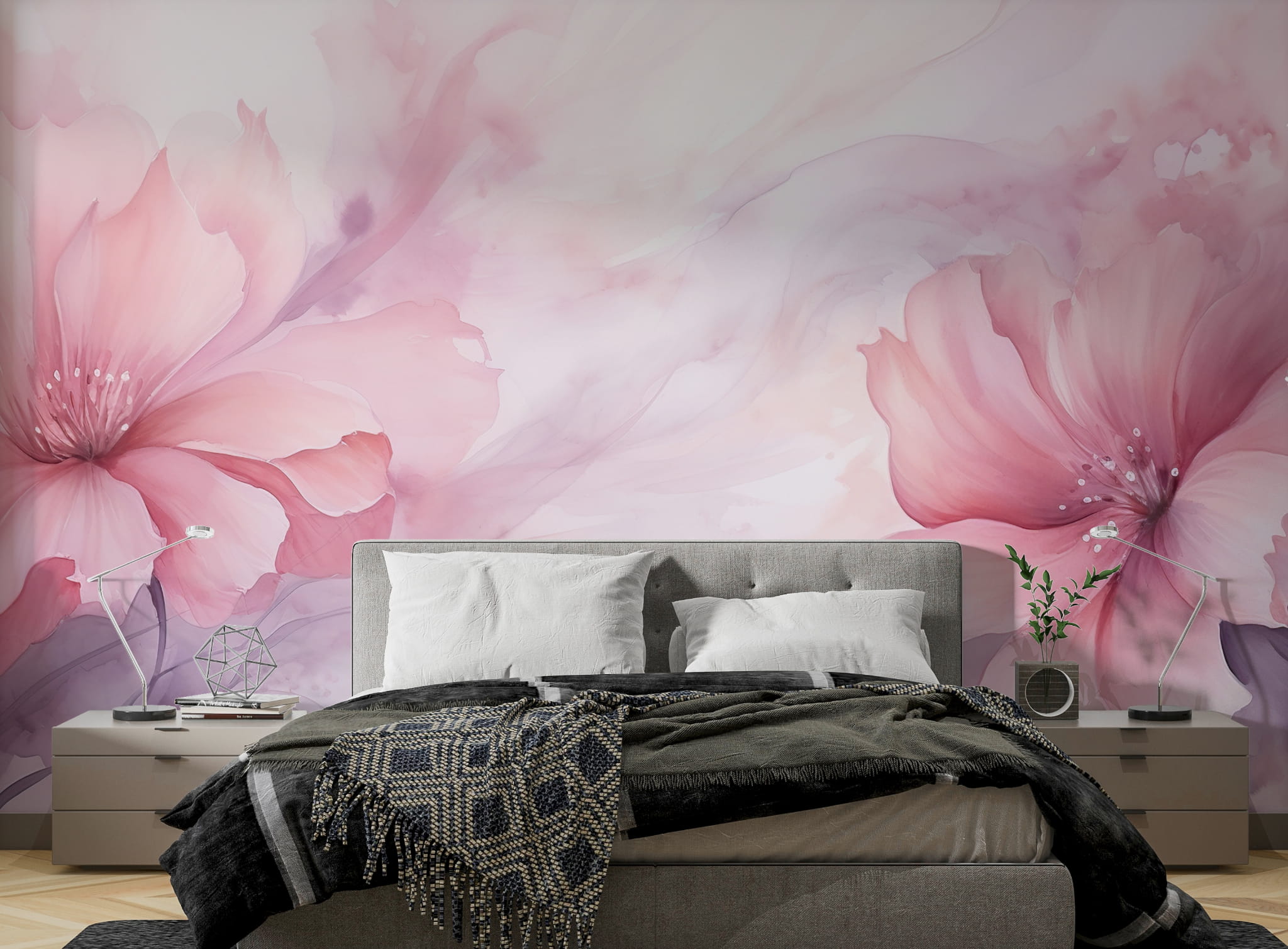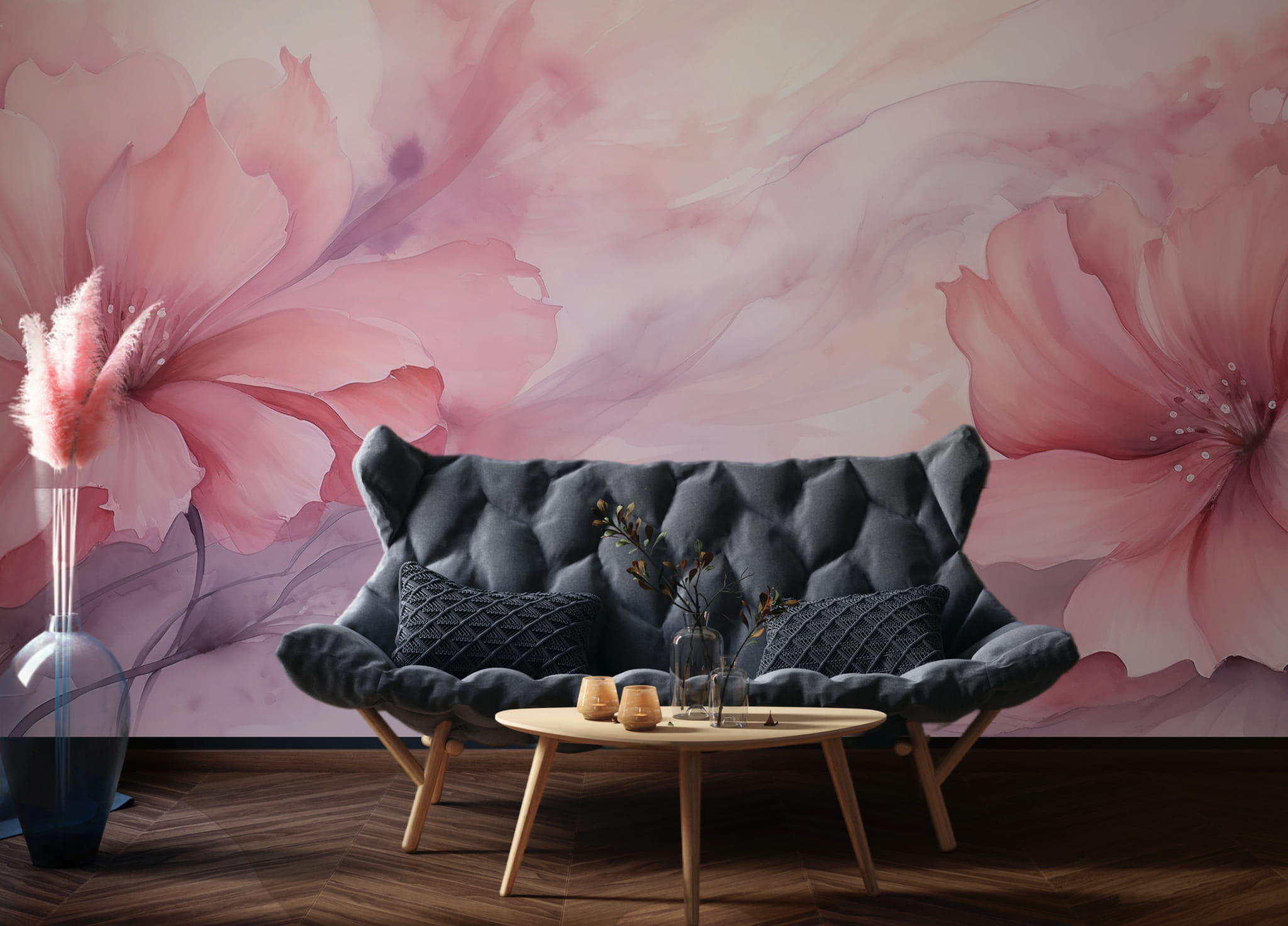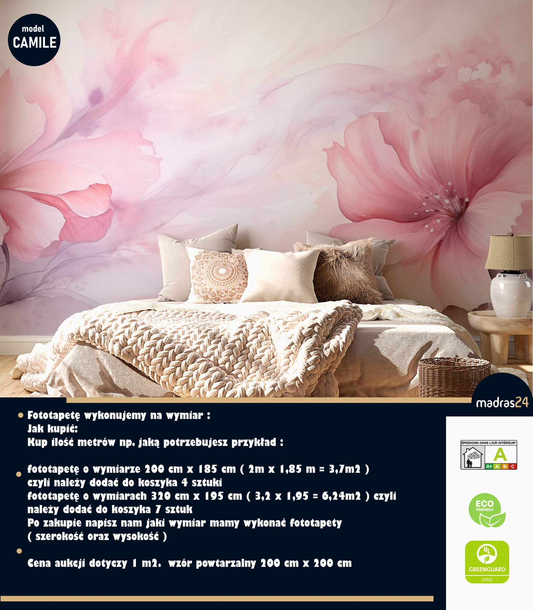 Fototapeta Tapeta kwiaty kwiatowa różowe pastelowe styl wiktoriański CAMILE