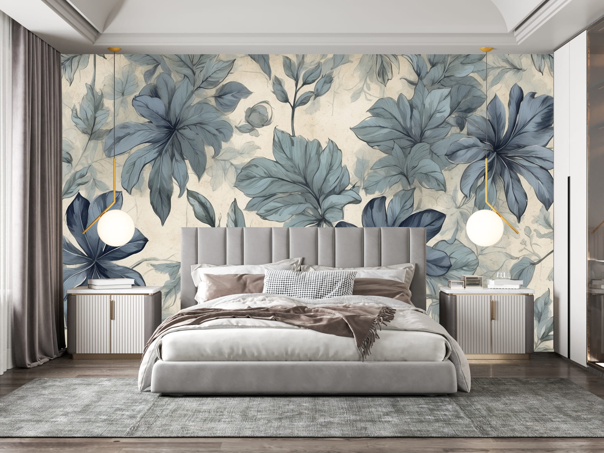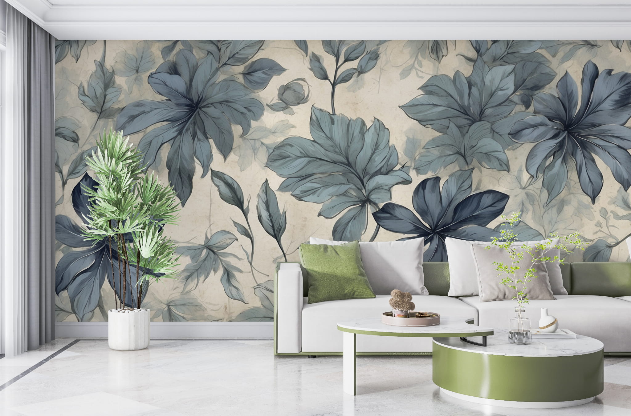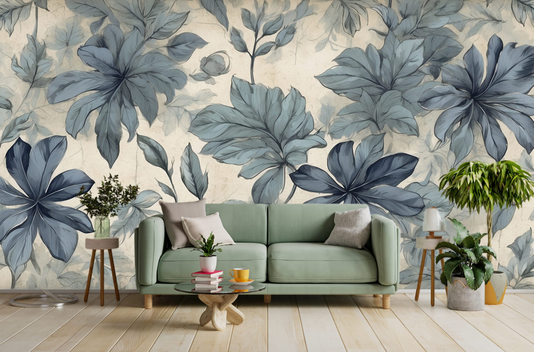 Fototapeta Tapeta kwiaty liście w akwarelach boho Pastel Dekoracja ściennaFTS28