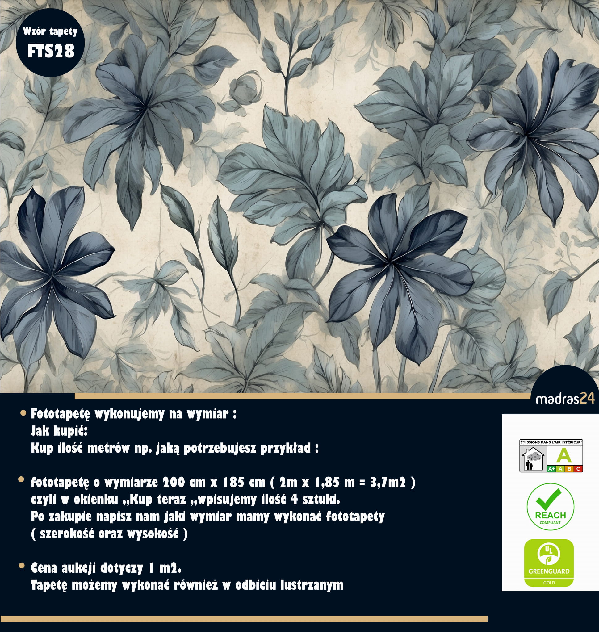 fototapetę o wymiarze 200 cm x 185 cm ( 2m x 1,85 m = 3,7m2 ) czyli w okienku „Kup teraz „wpisujemy ilość 4 sztuki. Po zakupie napisz nam jaki wymiar mamy wykonać fototapety ( szerokość oraz wysokość )