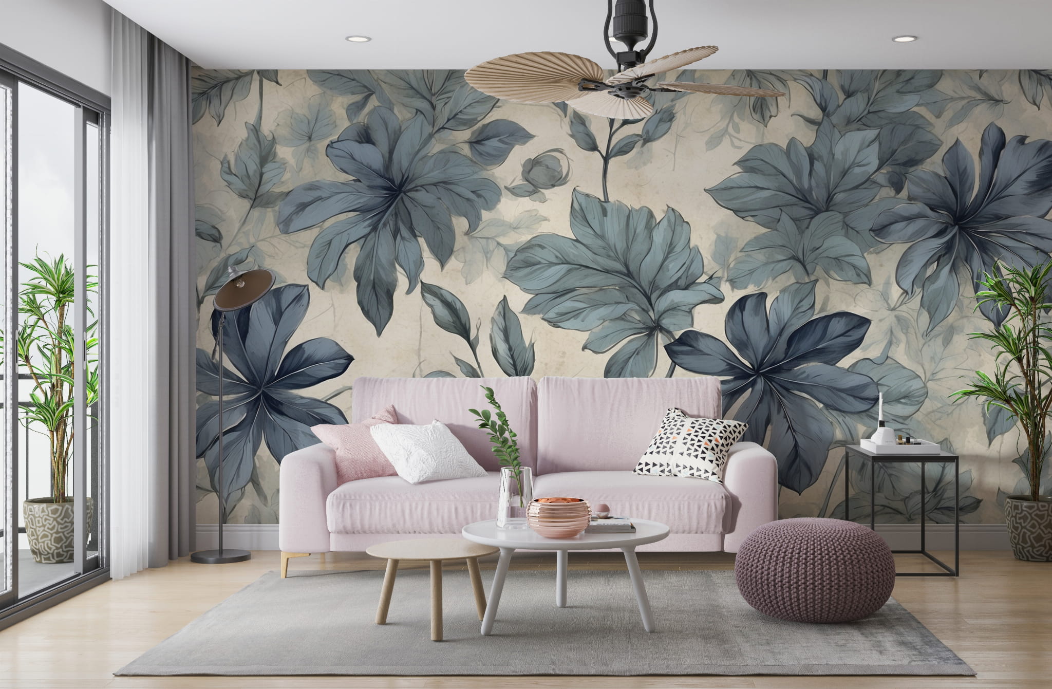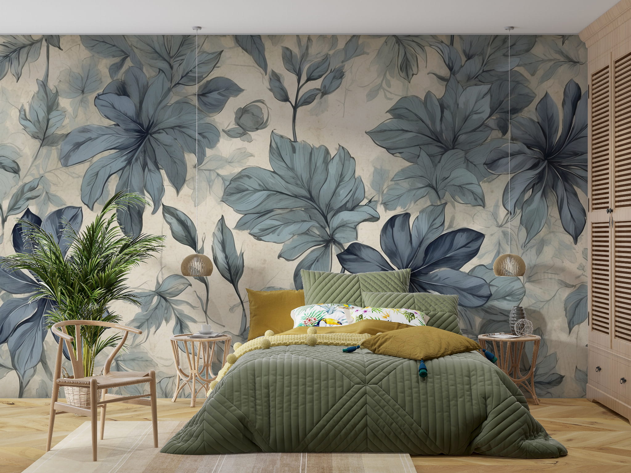 Fototapeta Tapeta kwiaty liście w akwarelach boho Pastel Dekoracja ściennaFTS28outlet 470x262cm