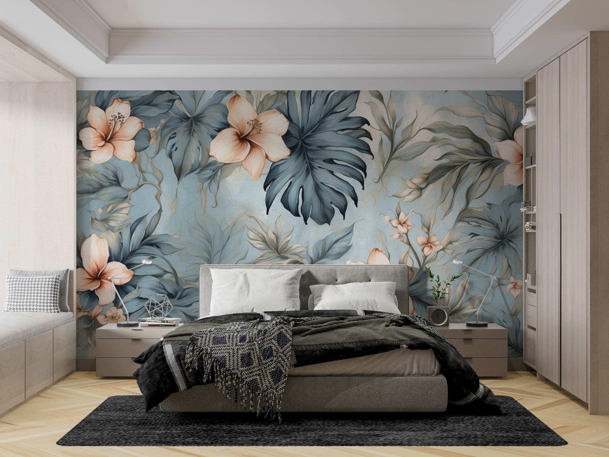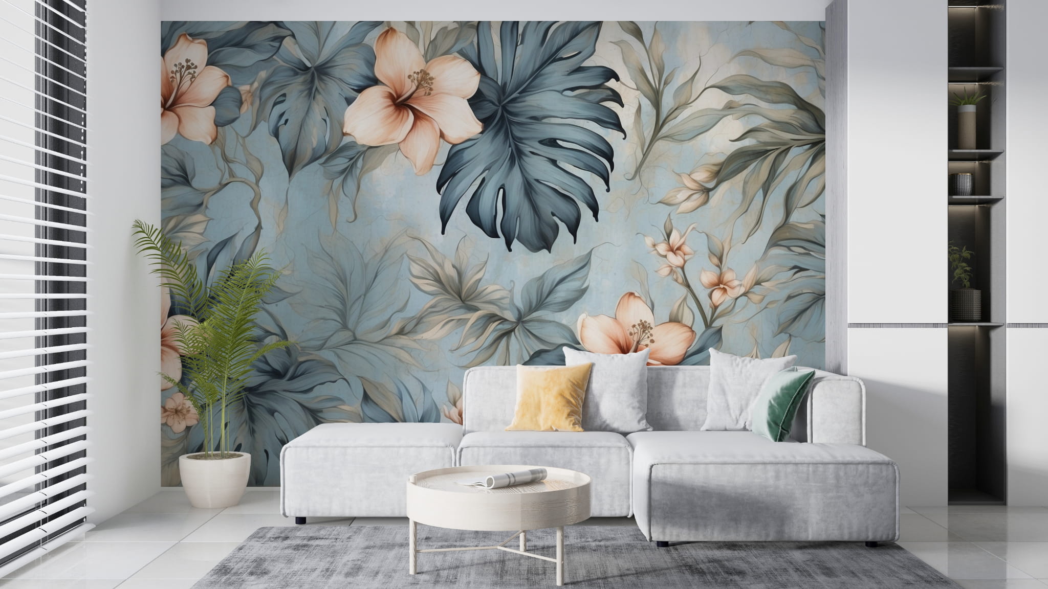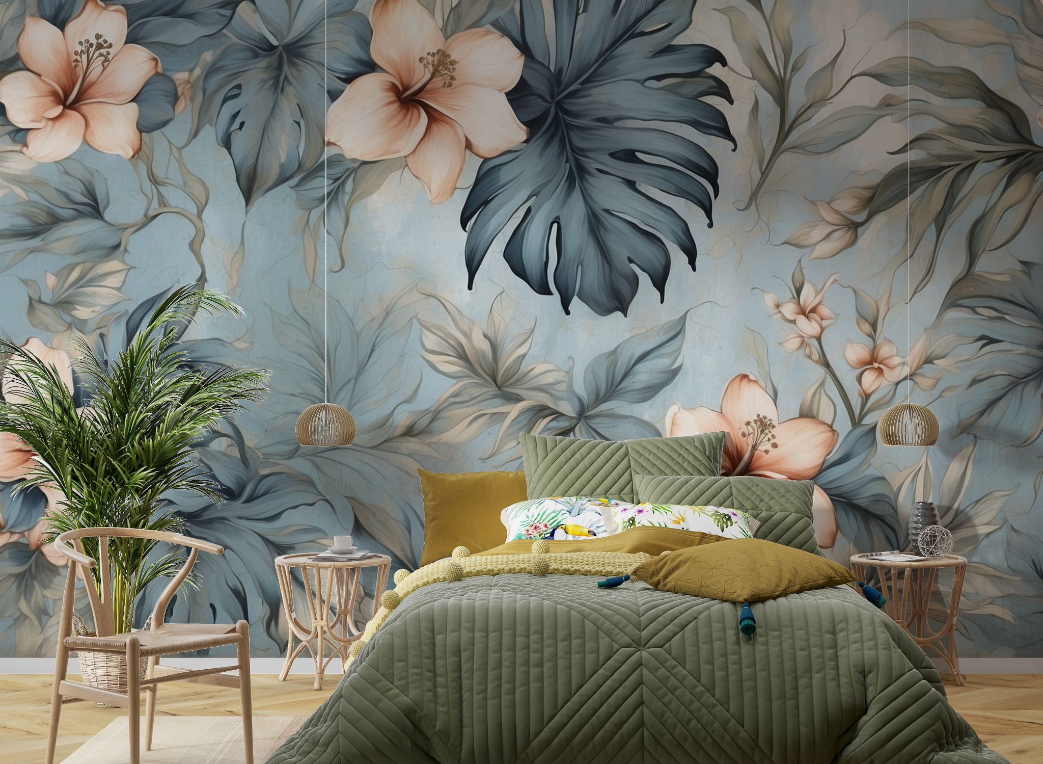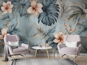 Fototapeta Tapeta kwiaty liście w akwarelach boho Pastel Dekoracja ściennaFTS40