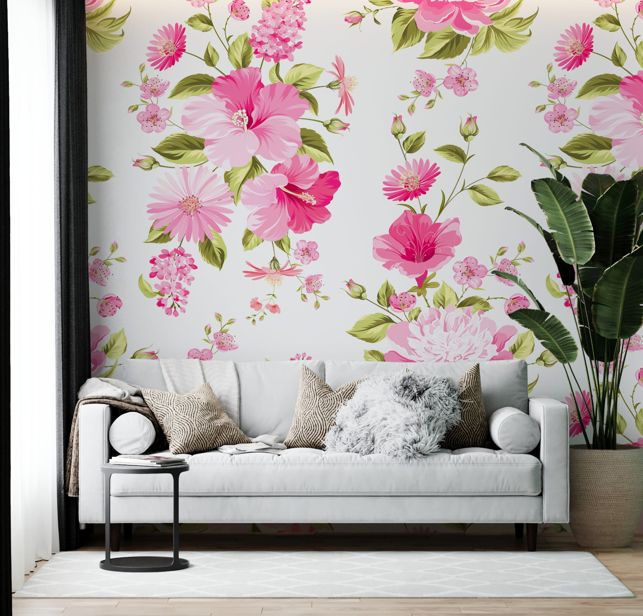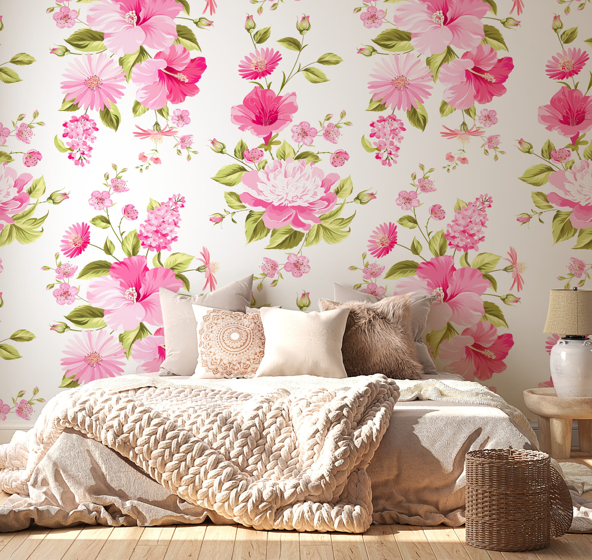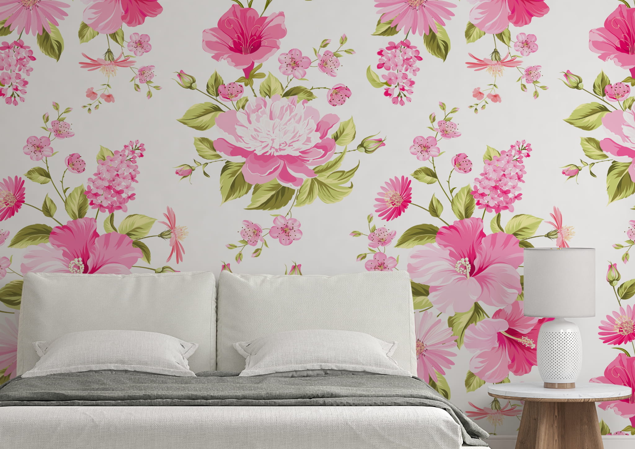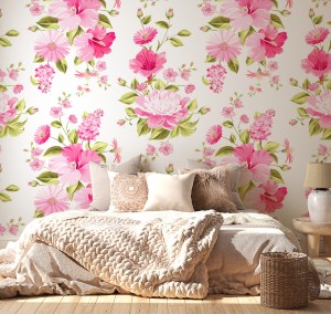 Fototapeta Tapeta kwiaty piwonie różowe pastelowe styl wiktoriański FST51