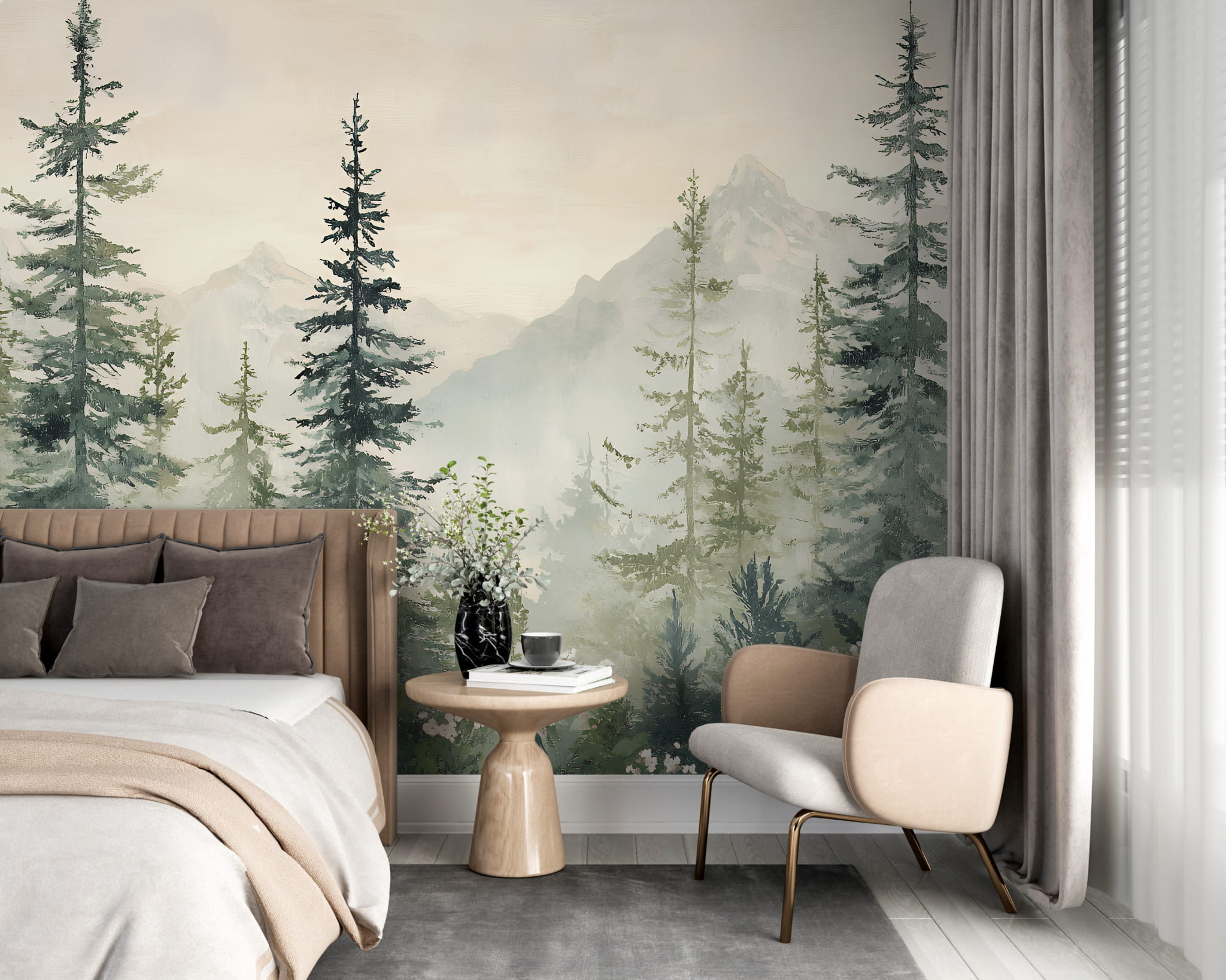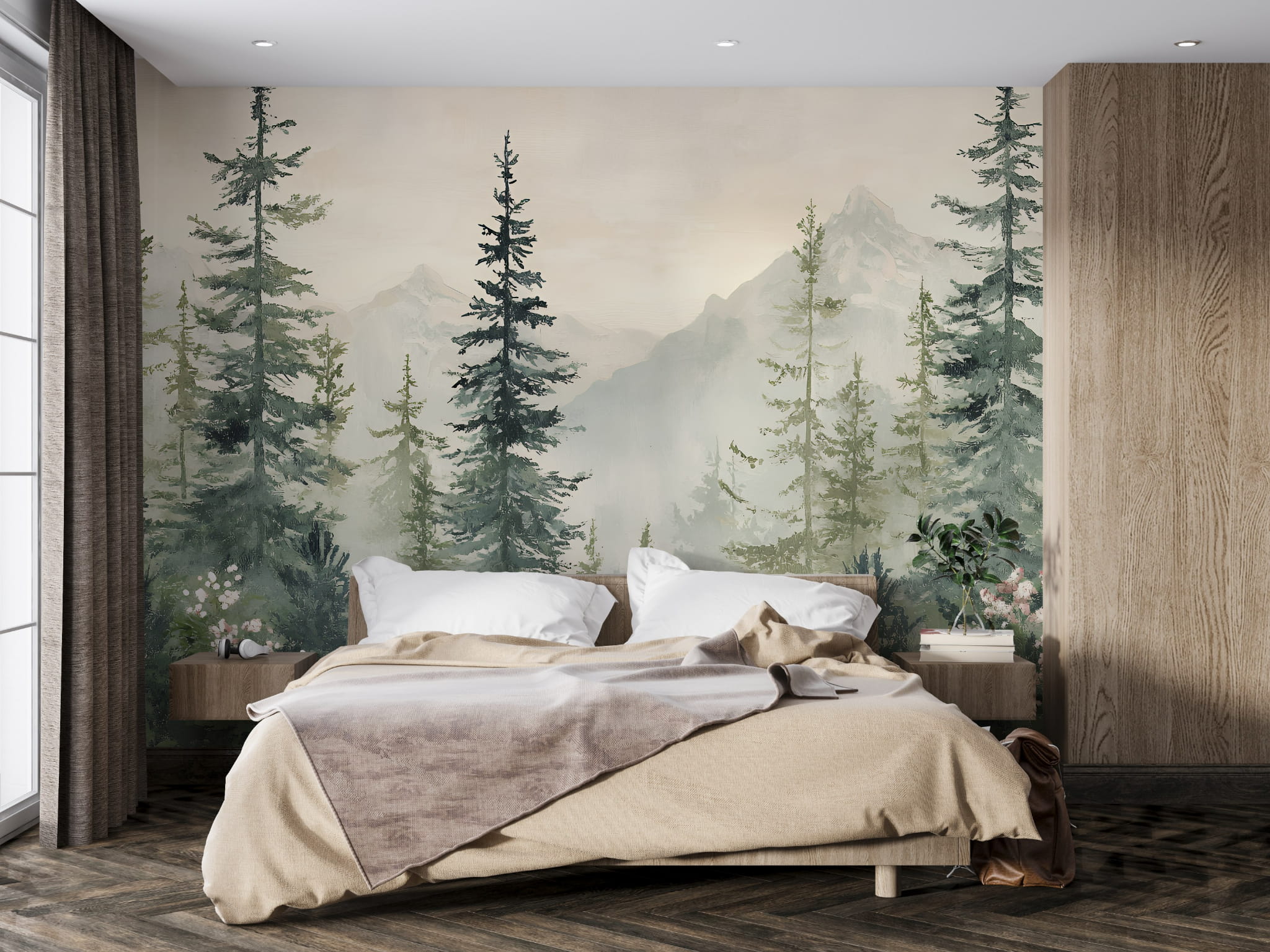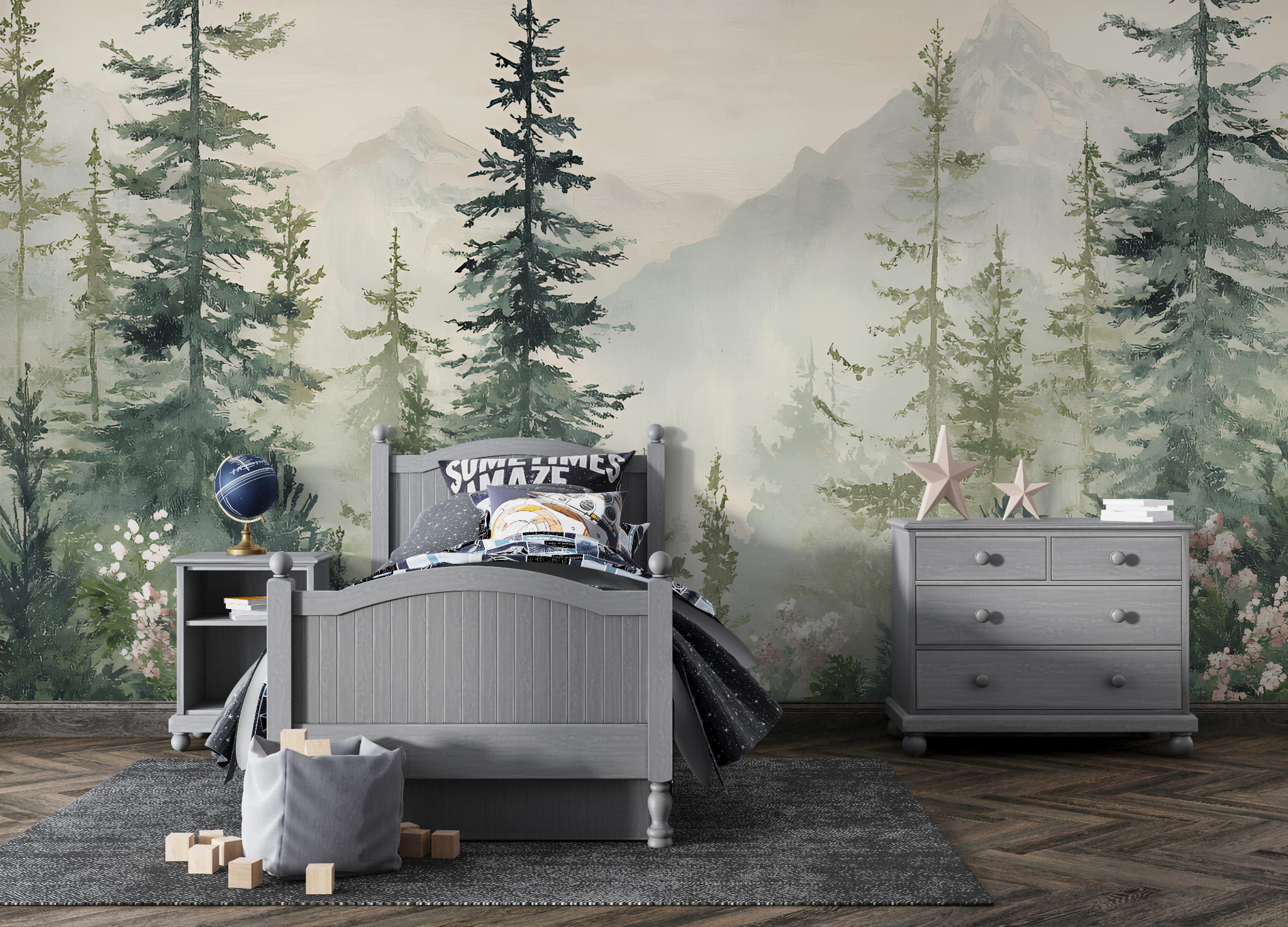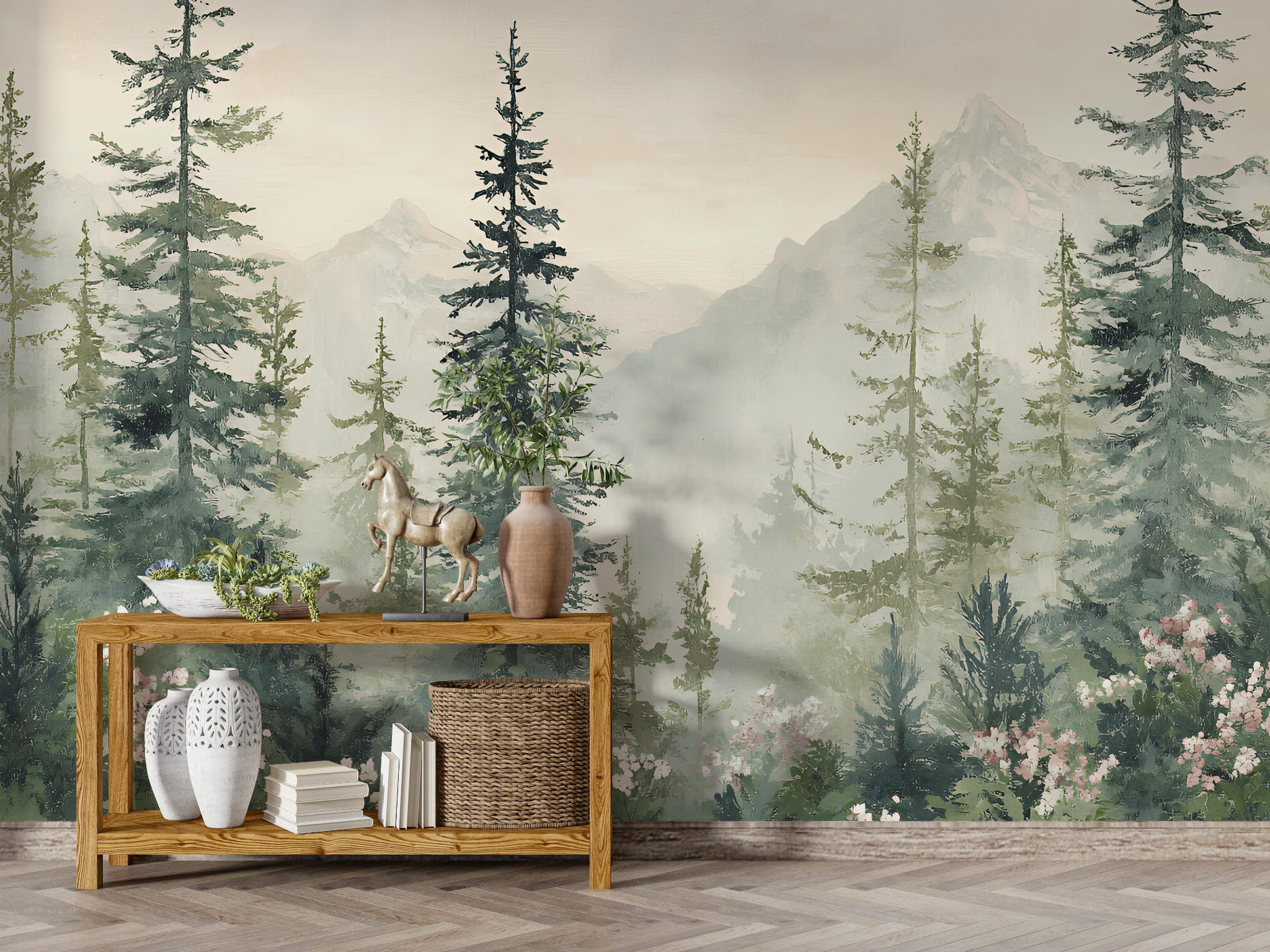 Fototapeta dla dzieci Tapeta las leśna leśne drzewa krajobraz góry łąka pejzaż na wymiar
