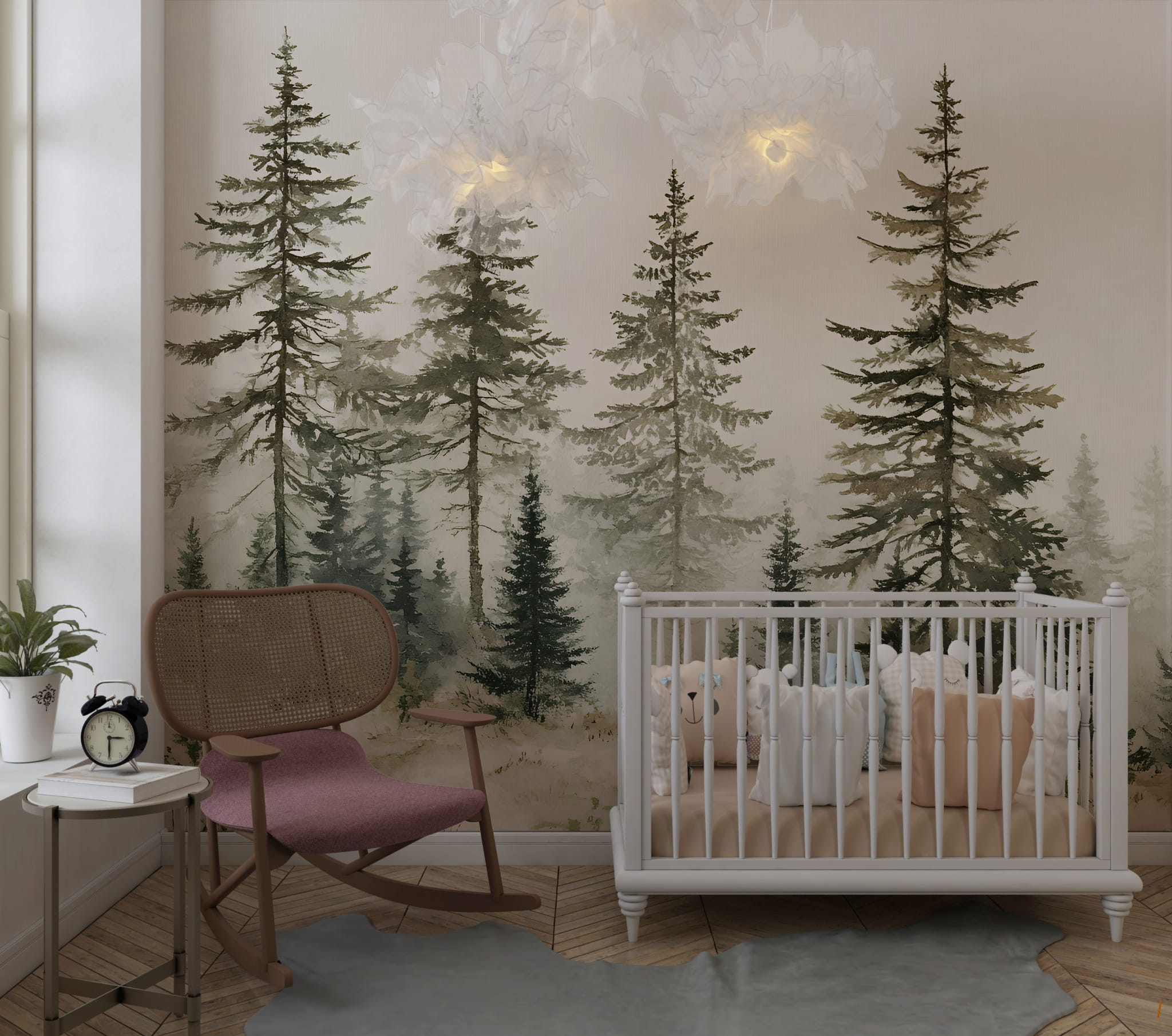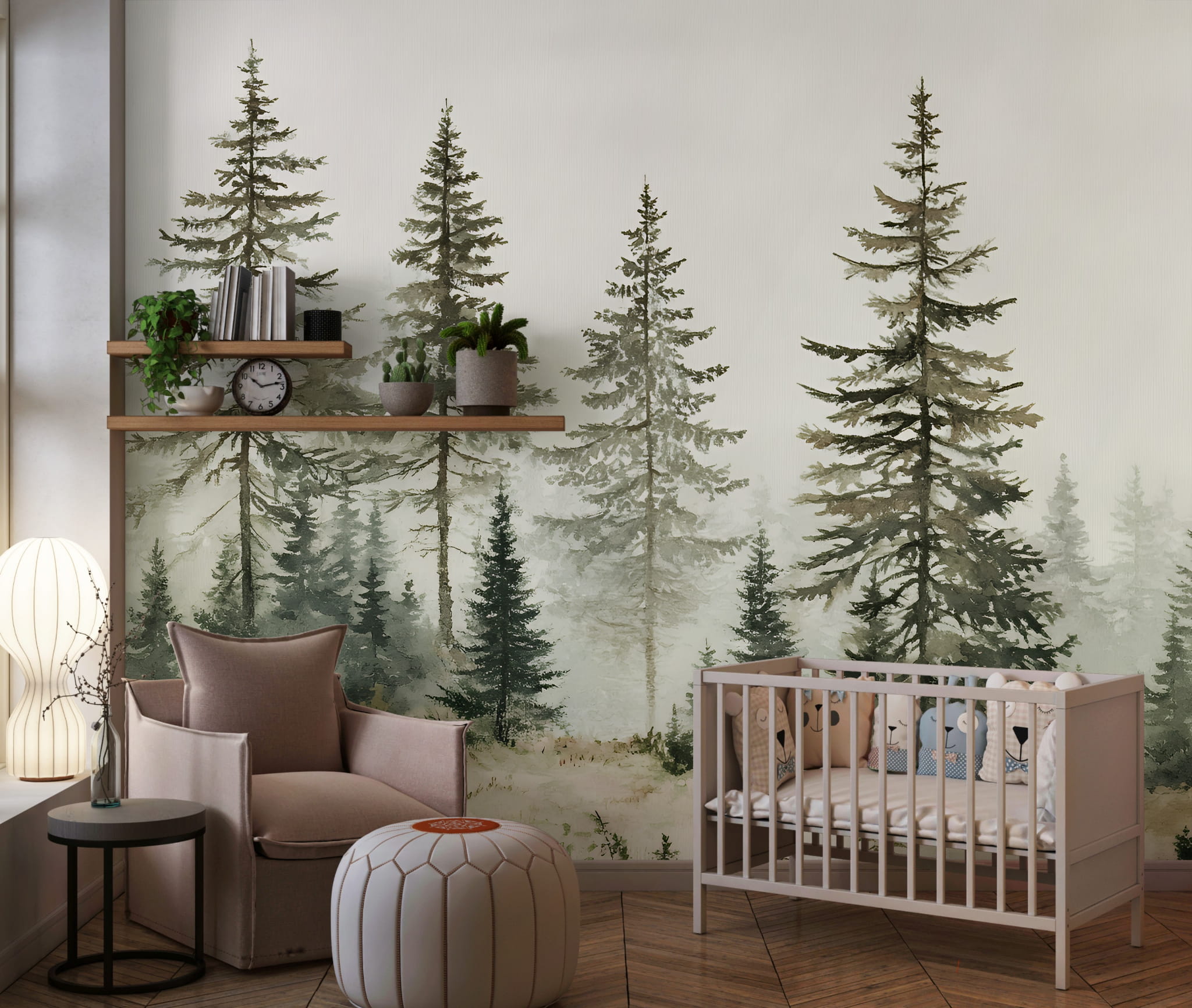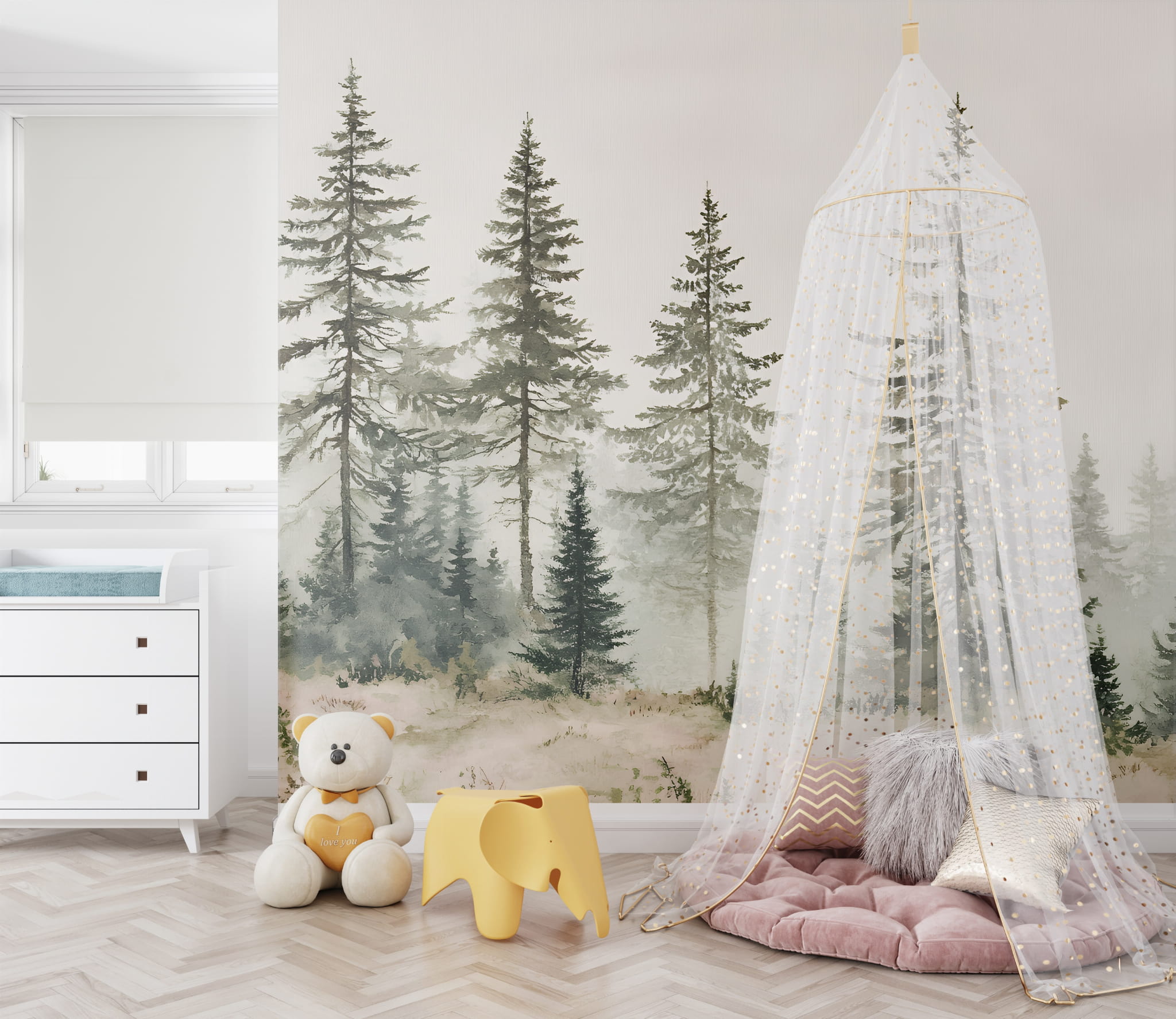 Fototapeta dla dzieci Tapeta las leśna leśne drzewa krajobraz góry łąka pejzaż na wymiar