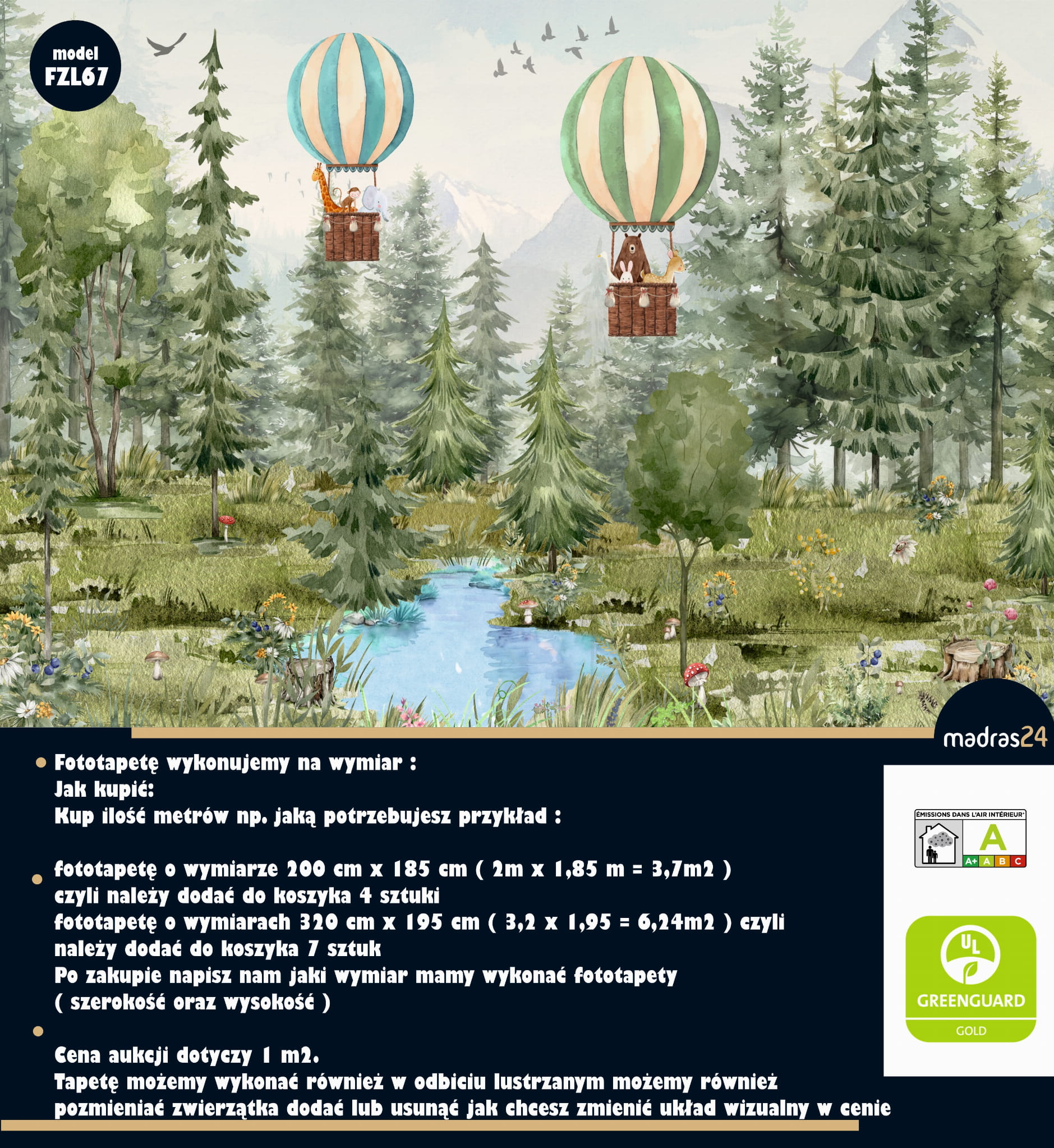 Cena dotyczy 1 m2. Tapetę możemy wykonać również w odbiciu lustrzanym możemy również pozmieniać zwierzątka dodać lub usunąć jak chcesz zmienić układ wizualny w cenie