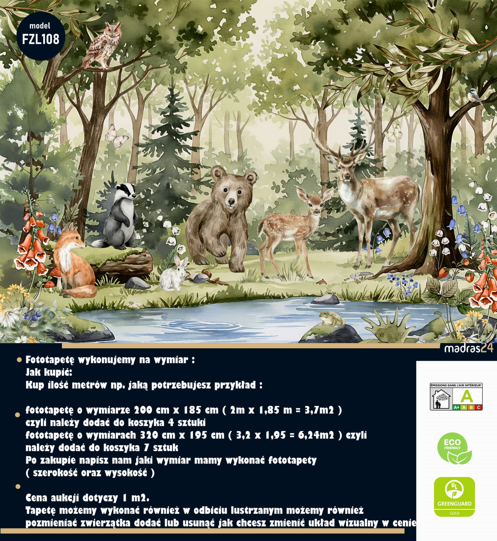 Cena dotyczy 1 m2. Tapetę możemy wykonać również w odbiciu lustrzanym możemy również pozmieniać zwierzątka dodać lub usunąć jak chcesz zmienić układ wizualny w cenie
