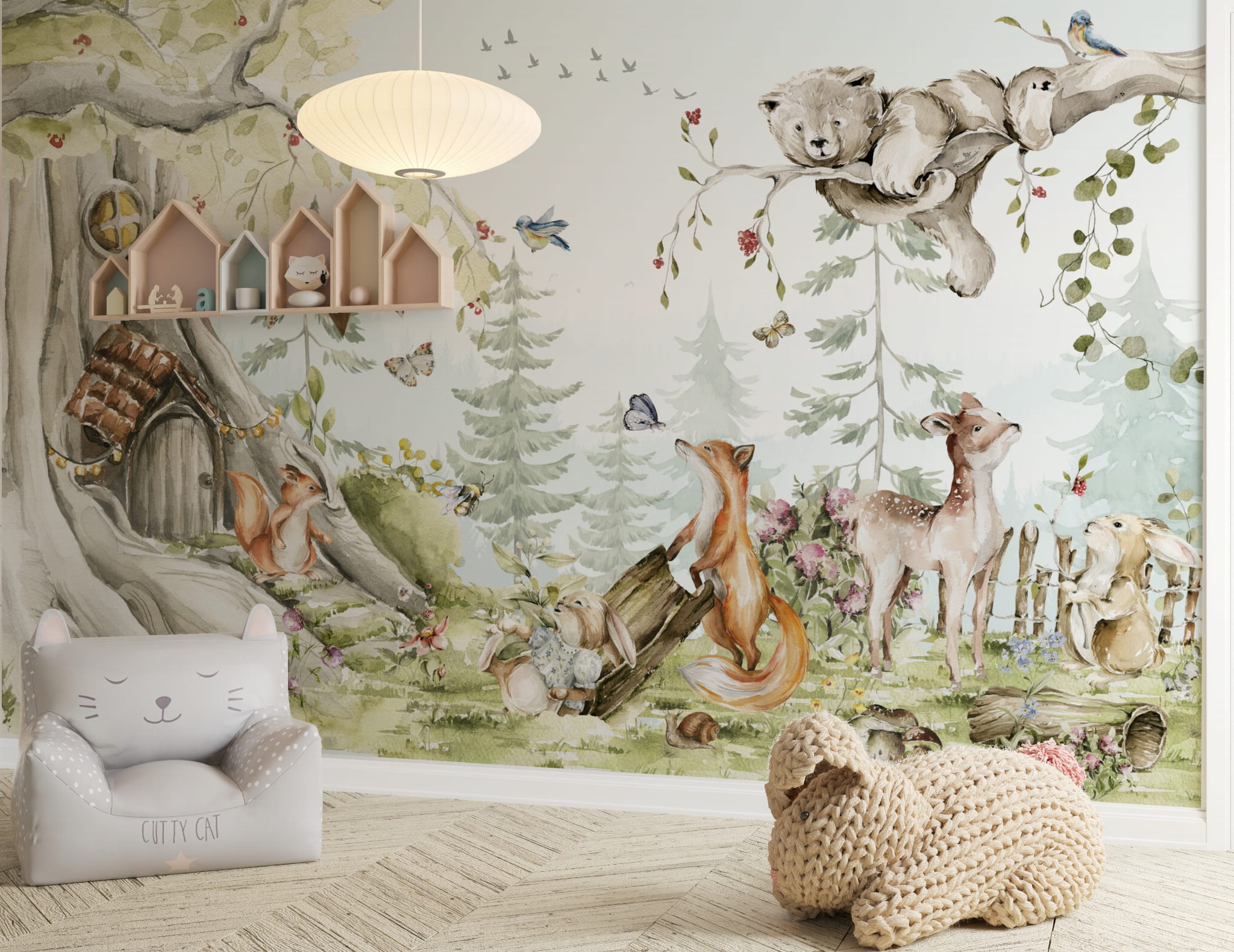 Fototapeta dla dzieci Tapeta las leśna zwierzęta leśne drzewa miś sarna wilk na wymiar FZL23 outlet 240x200cm