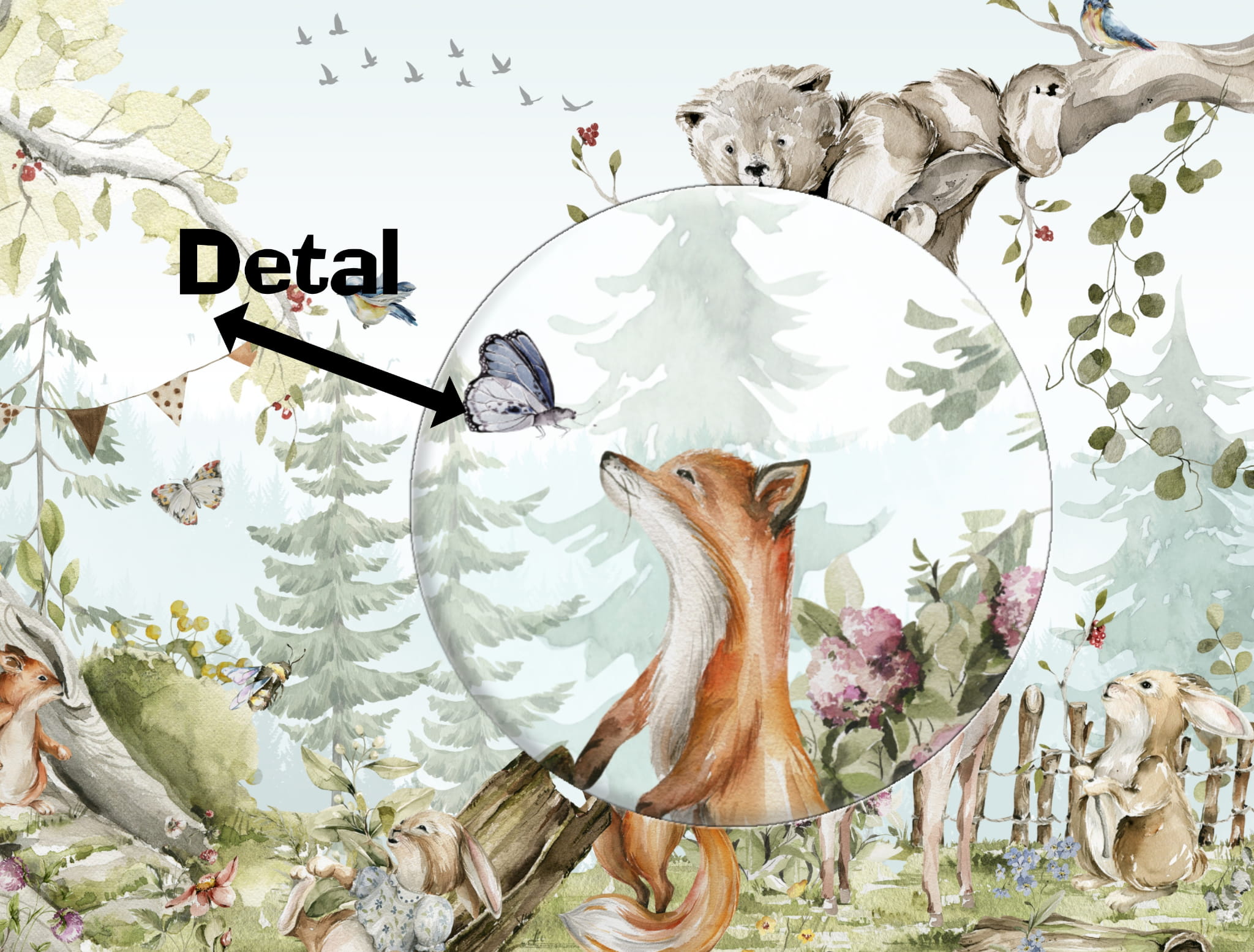 Cena dotyczy 1 m2. Tapetę możemy wykonać również w odbiciu lustrzanym możemy również pozmieniać zwierzątka dodać lub usunąć jak chcesz zmienić układ wizualny w cenie
