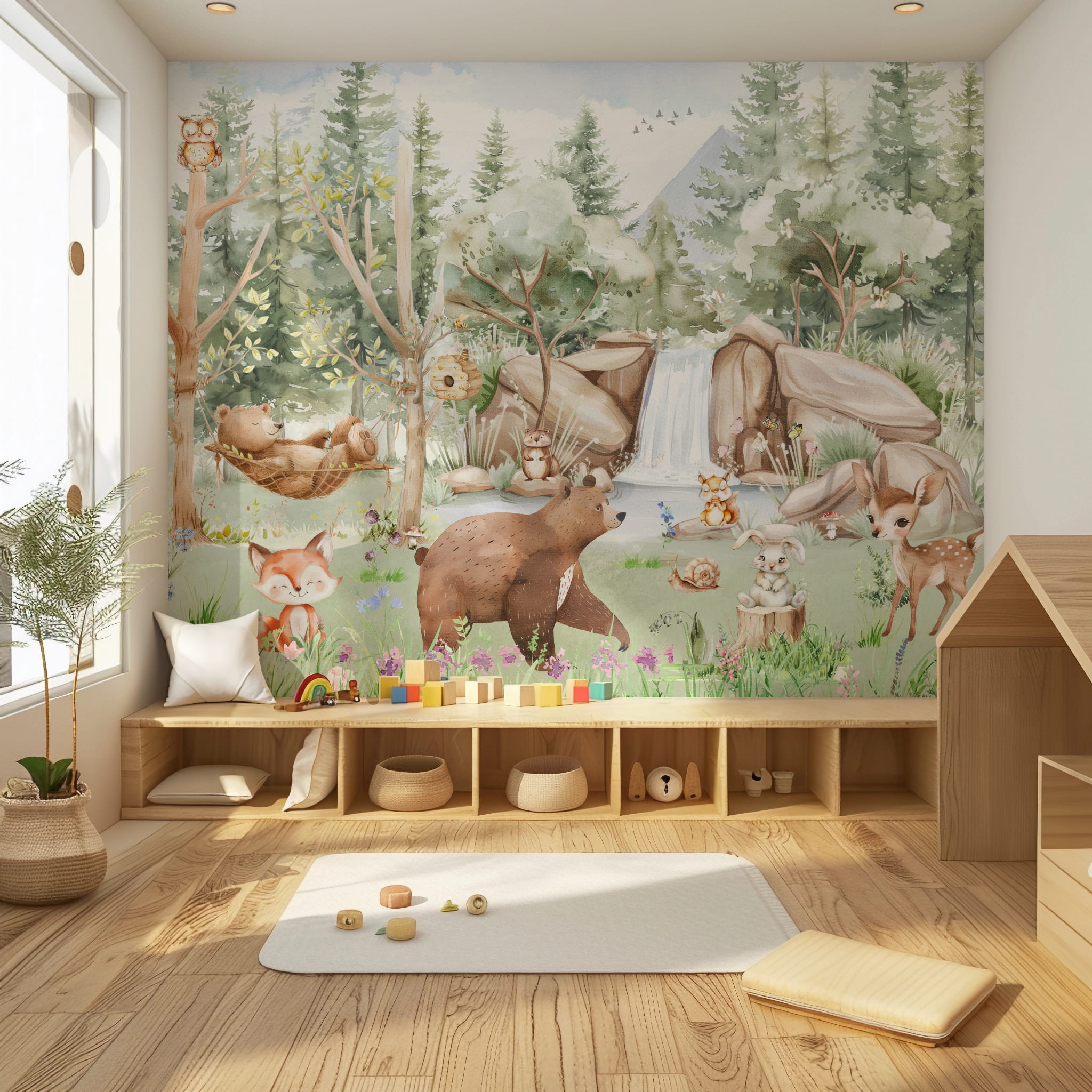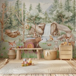 Fototapeta dla dzieci Tapeta las leśna zwierzęta leśne drzewa miś sarna wilk na wymiar FZL55 outlet