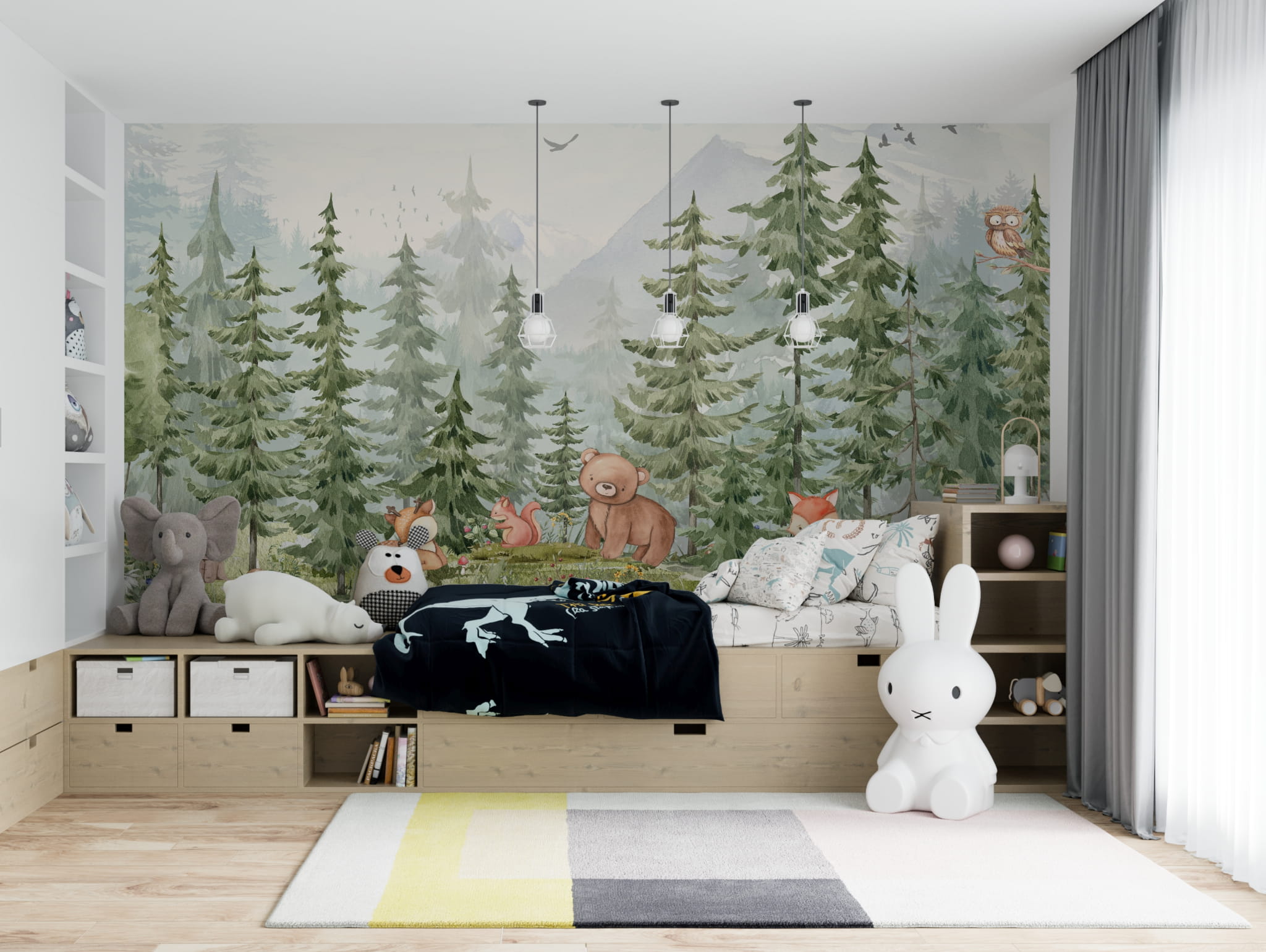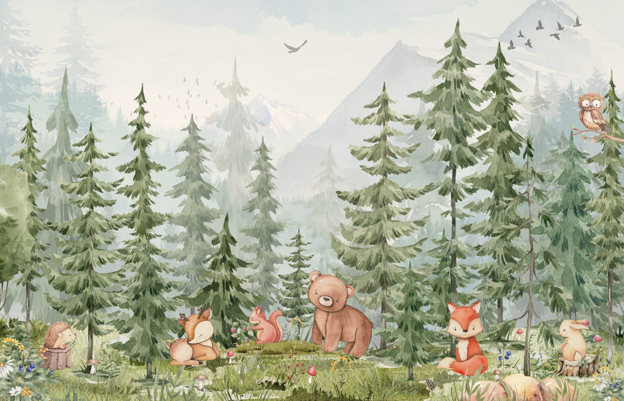 Fototapeta dla dzieci Tapeta las leśna zwierzęta leśne drzewa sarna miś królik na wymiar FZL39