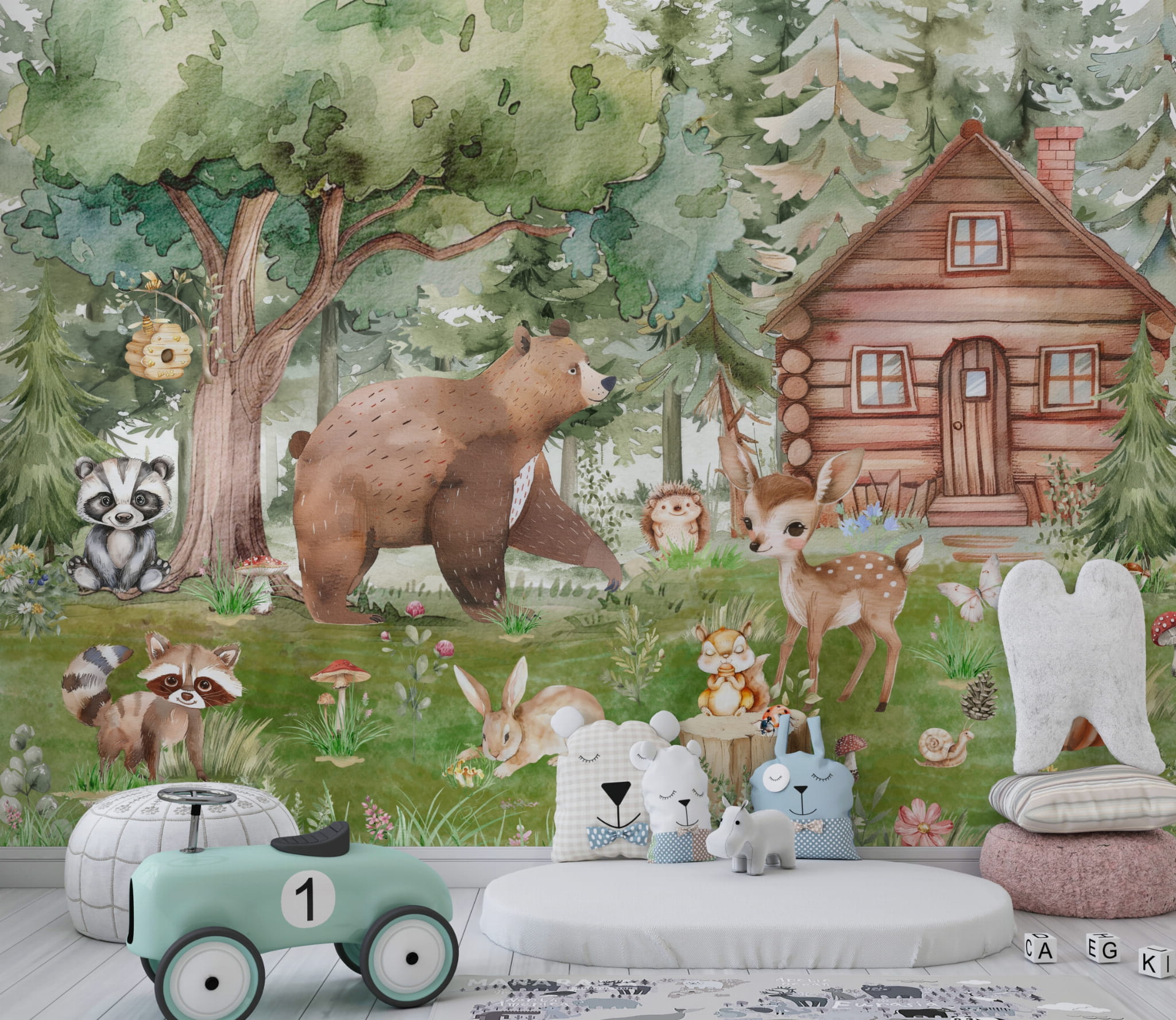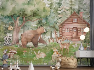 Fototapeta dla dzieci Tapeta las leśna zwierzęta leśne drzewa sarna miś królik na wymiar FZL66