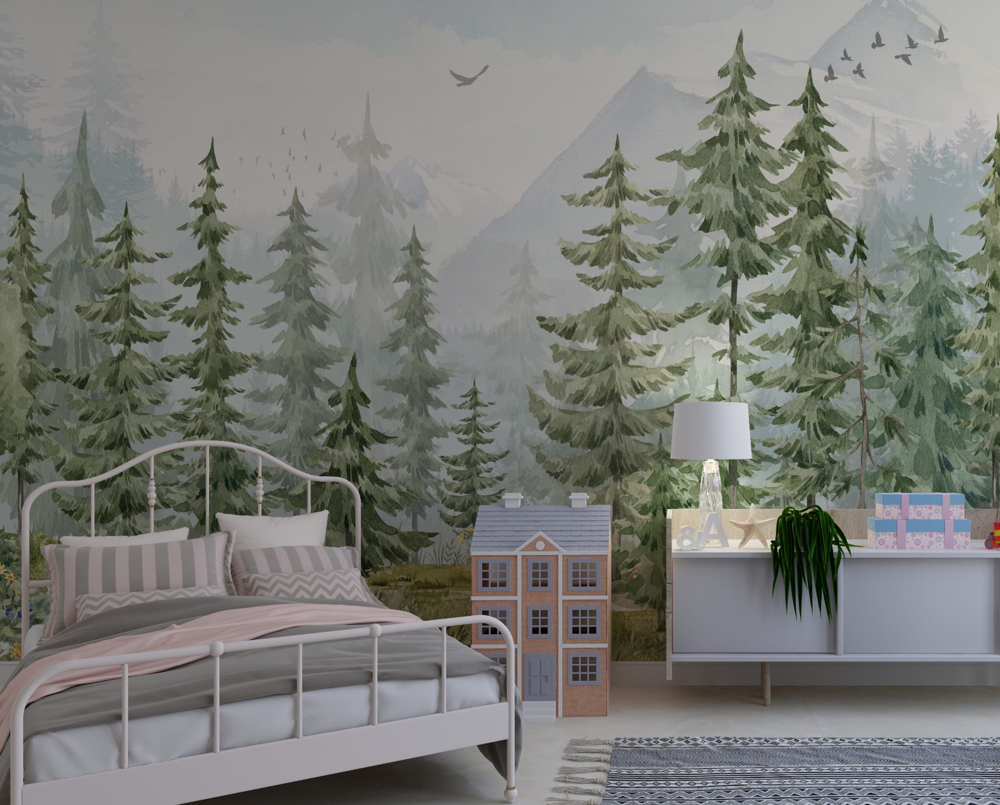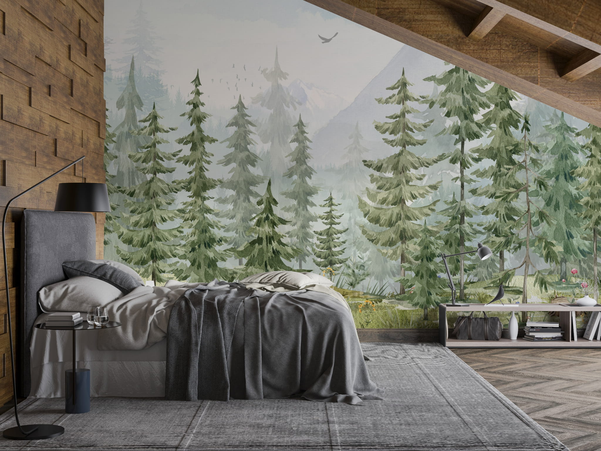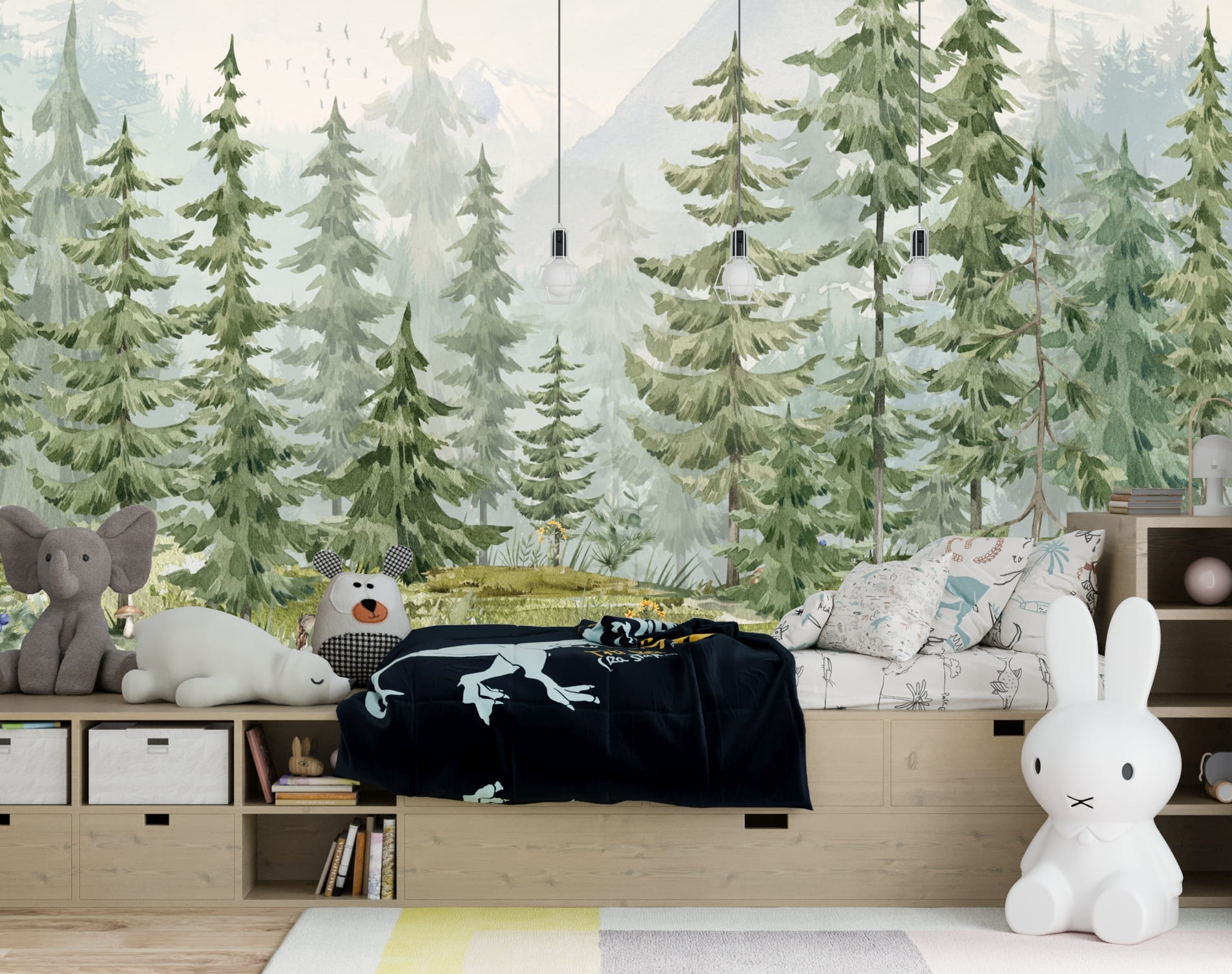 Fototapeta dla dzieci Tapeta las leśne drzewa sosny na wymiar FZL20 outlet 269x258cm