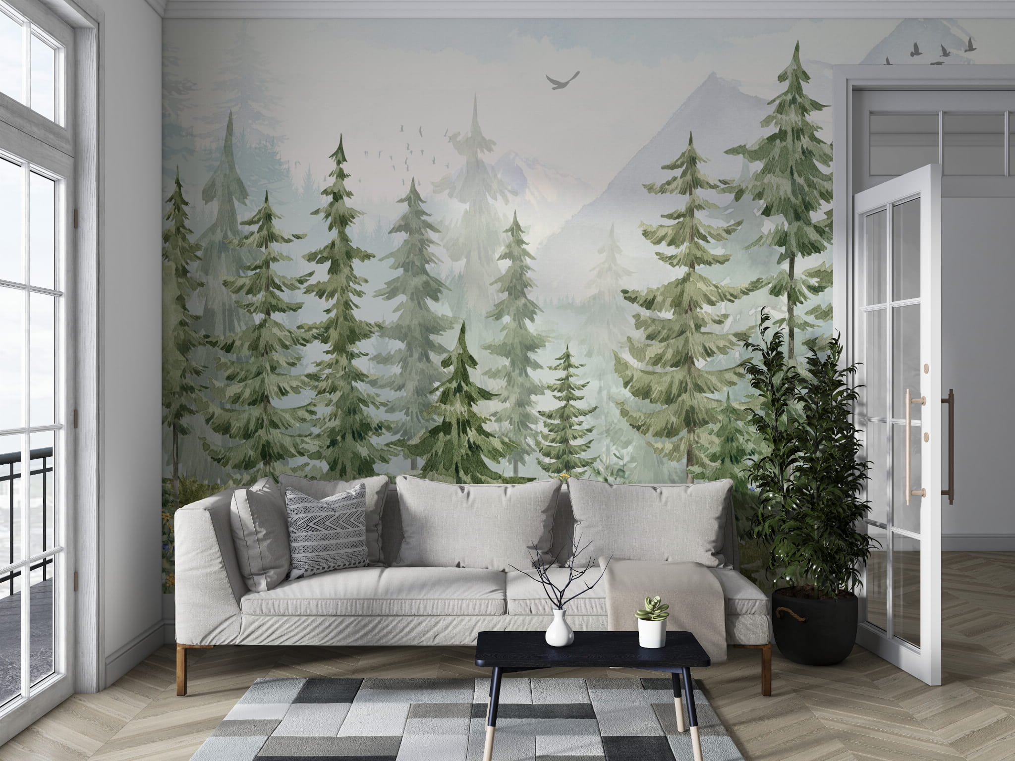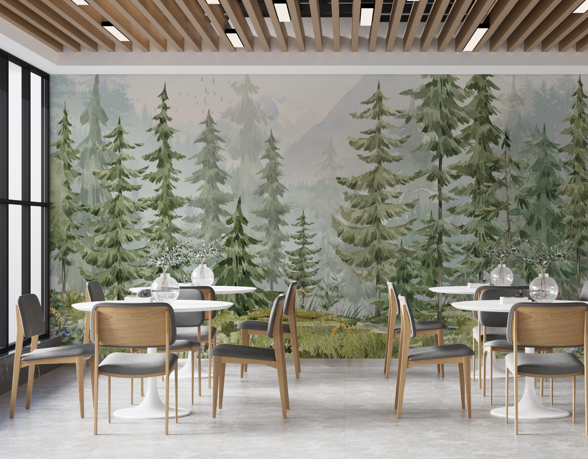 Fototapeta dla dzieci Tapeta las leśne drzewa sosny na wymiar FZL20 outlet 312x249cm