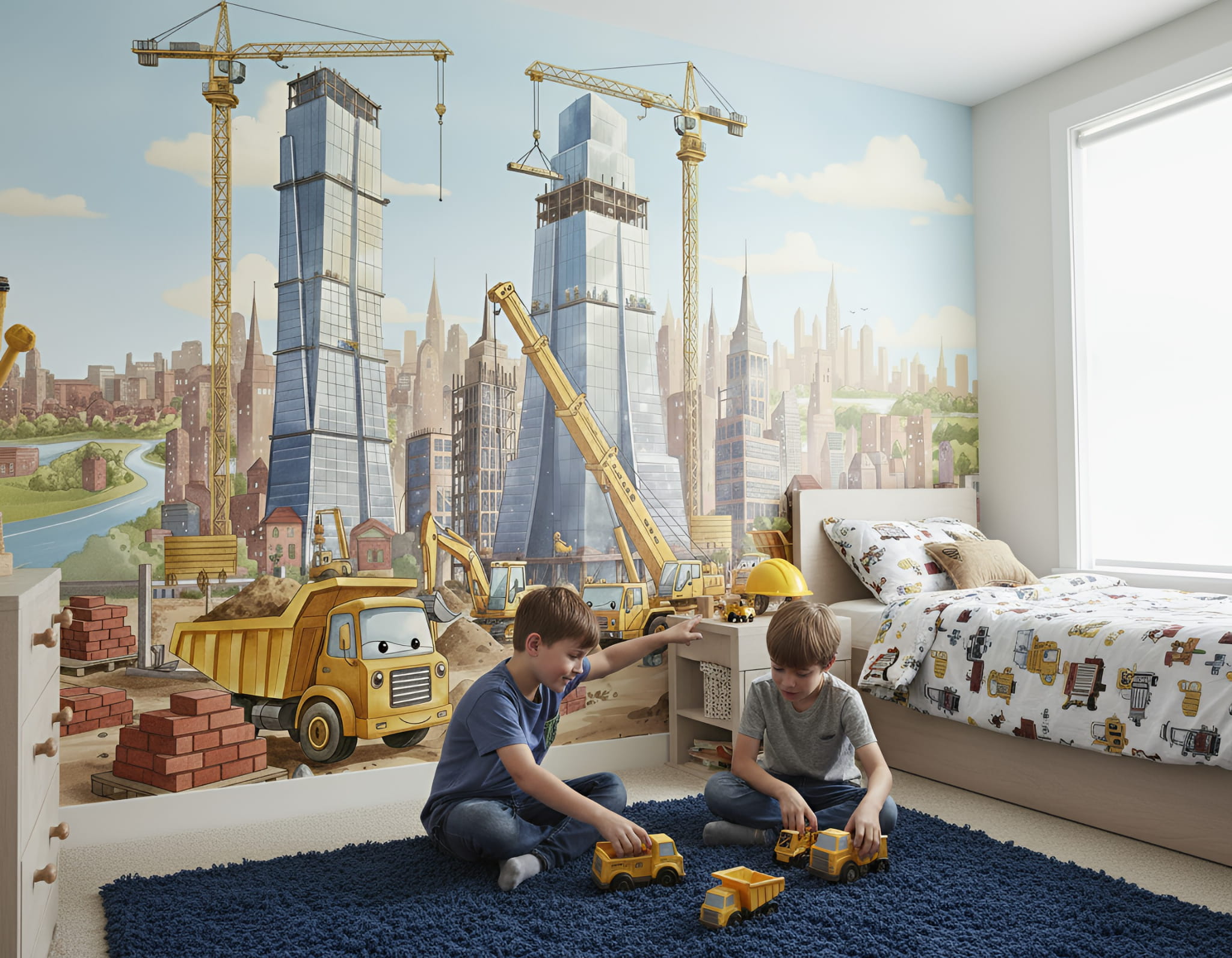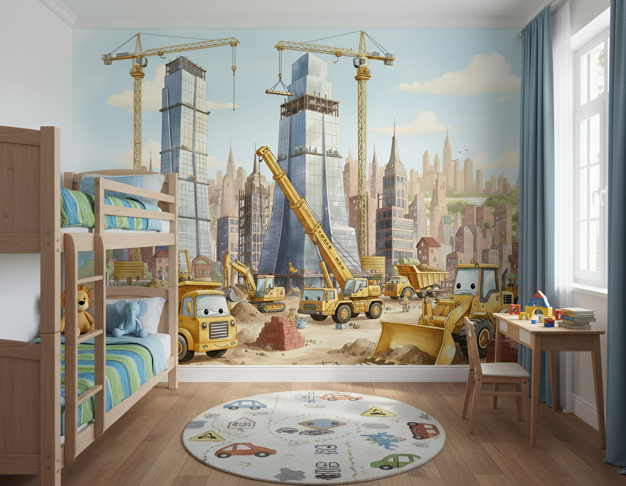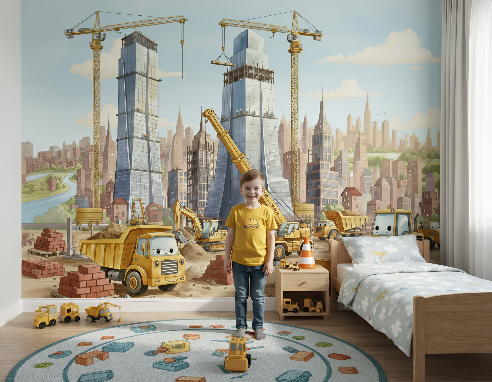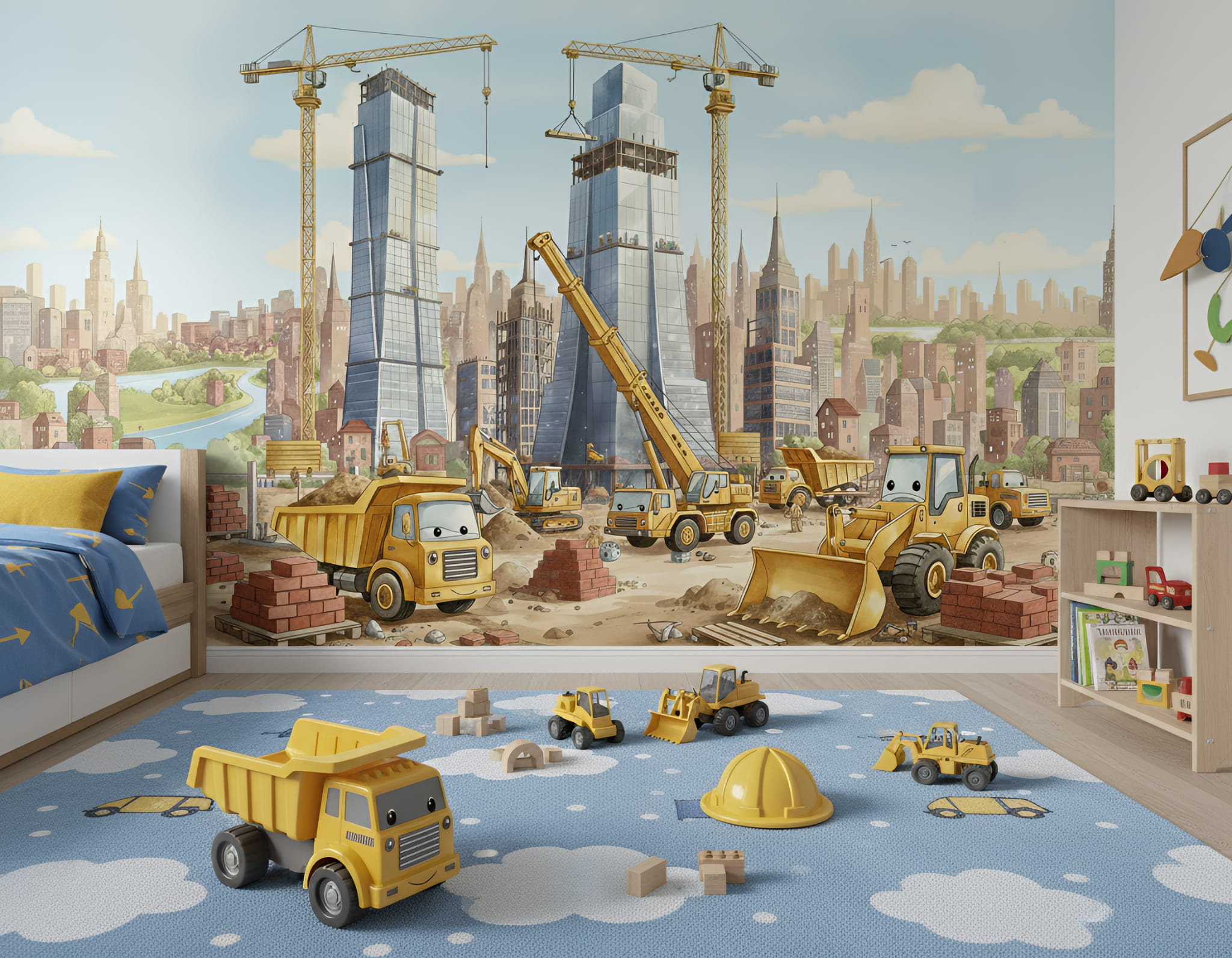 Fototapeta dla dzieci tapeta budowa koparki maszyny budowlane plac budowy na wymiar