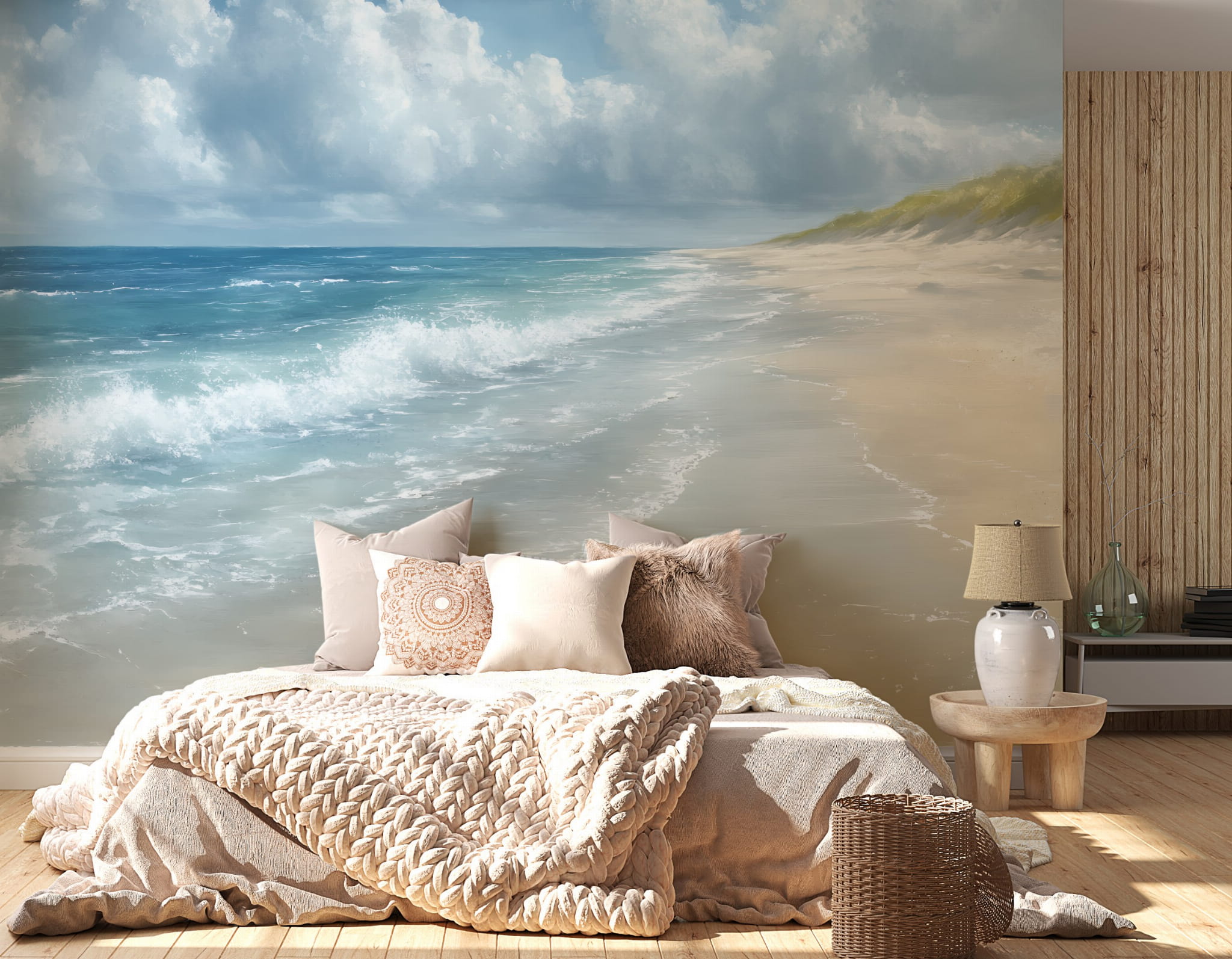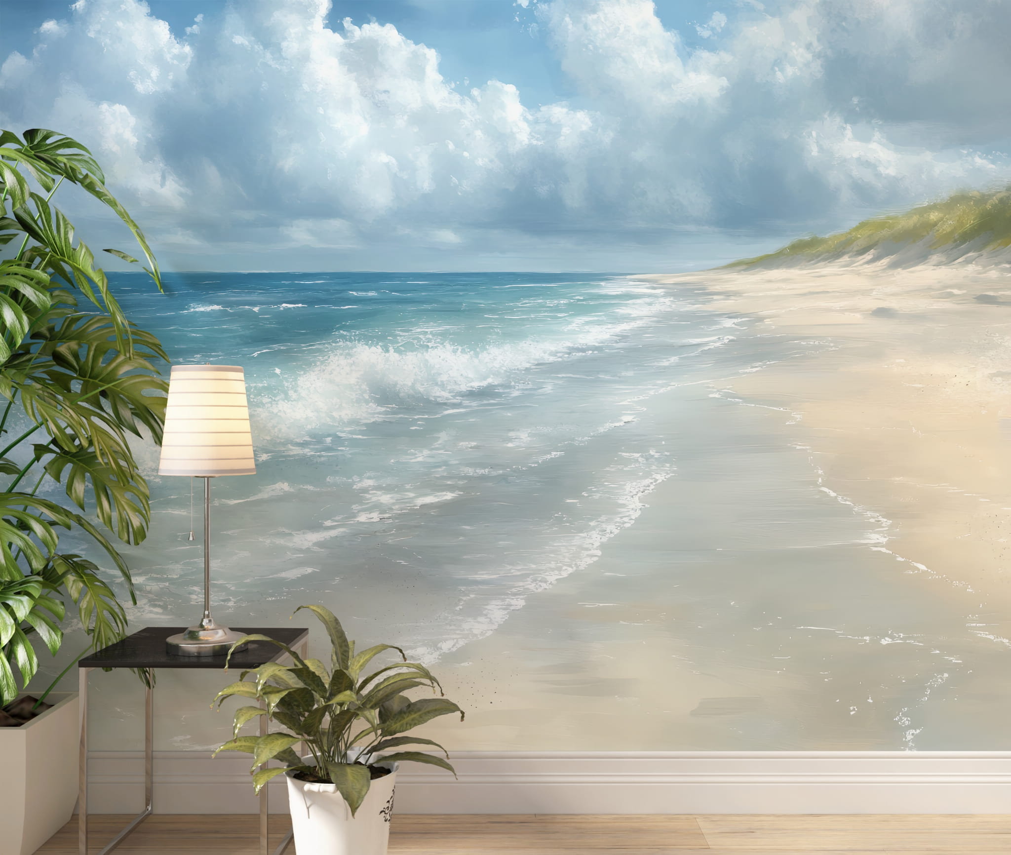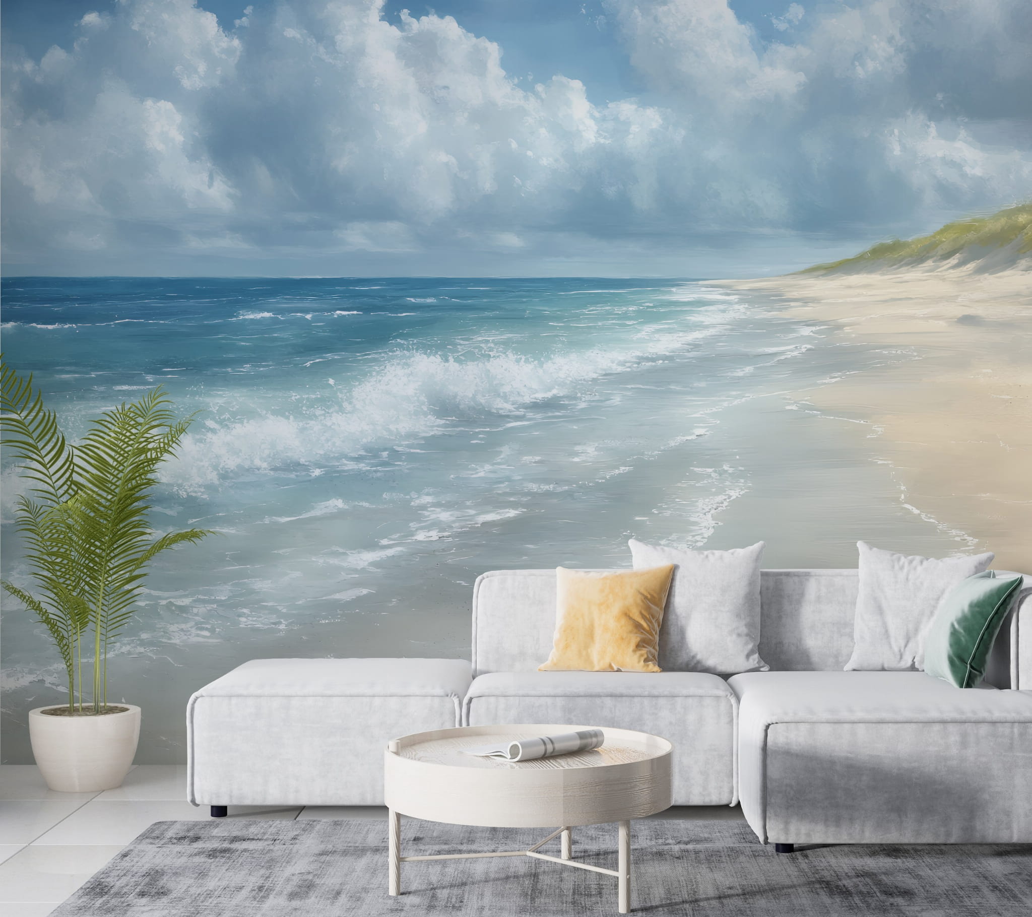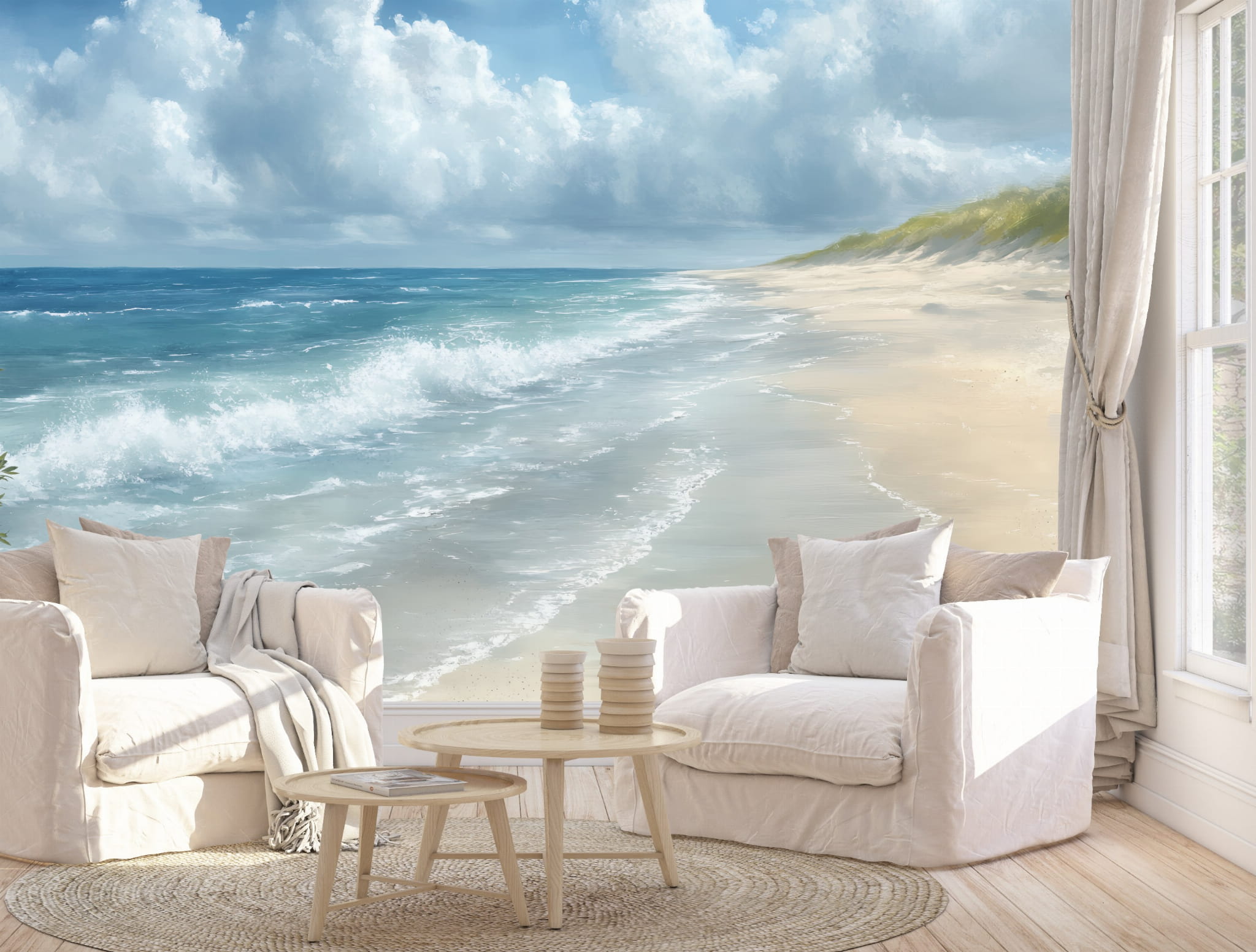 Fototapeta krajobraz Tapeta morska fale klif piasek plaża krajobraz akwarela pejzaż na wymiar