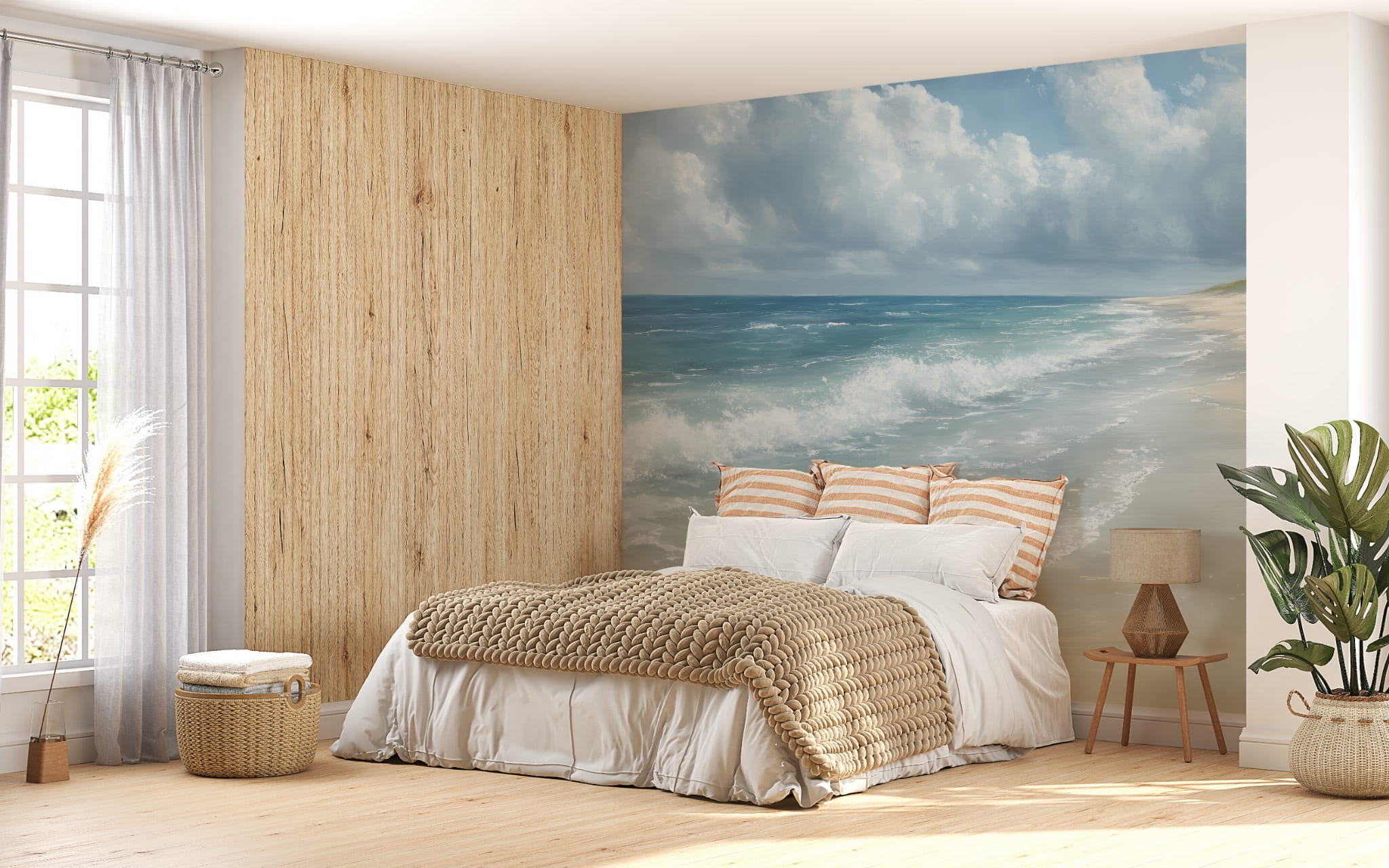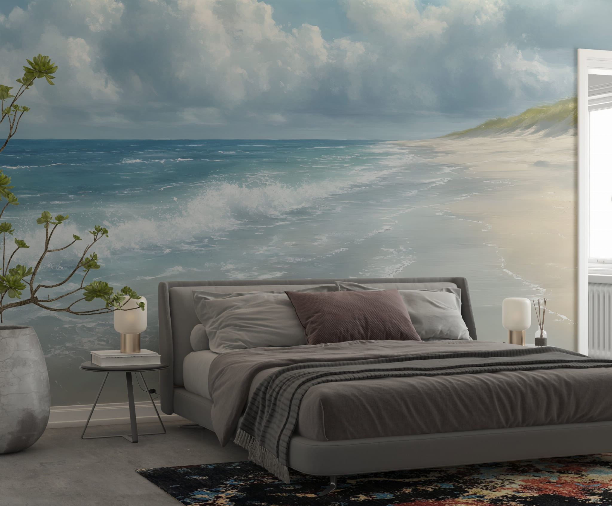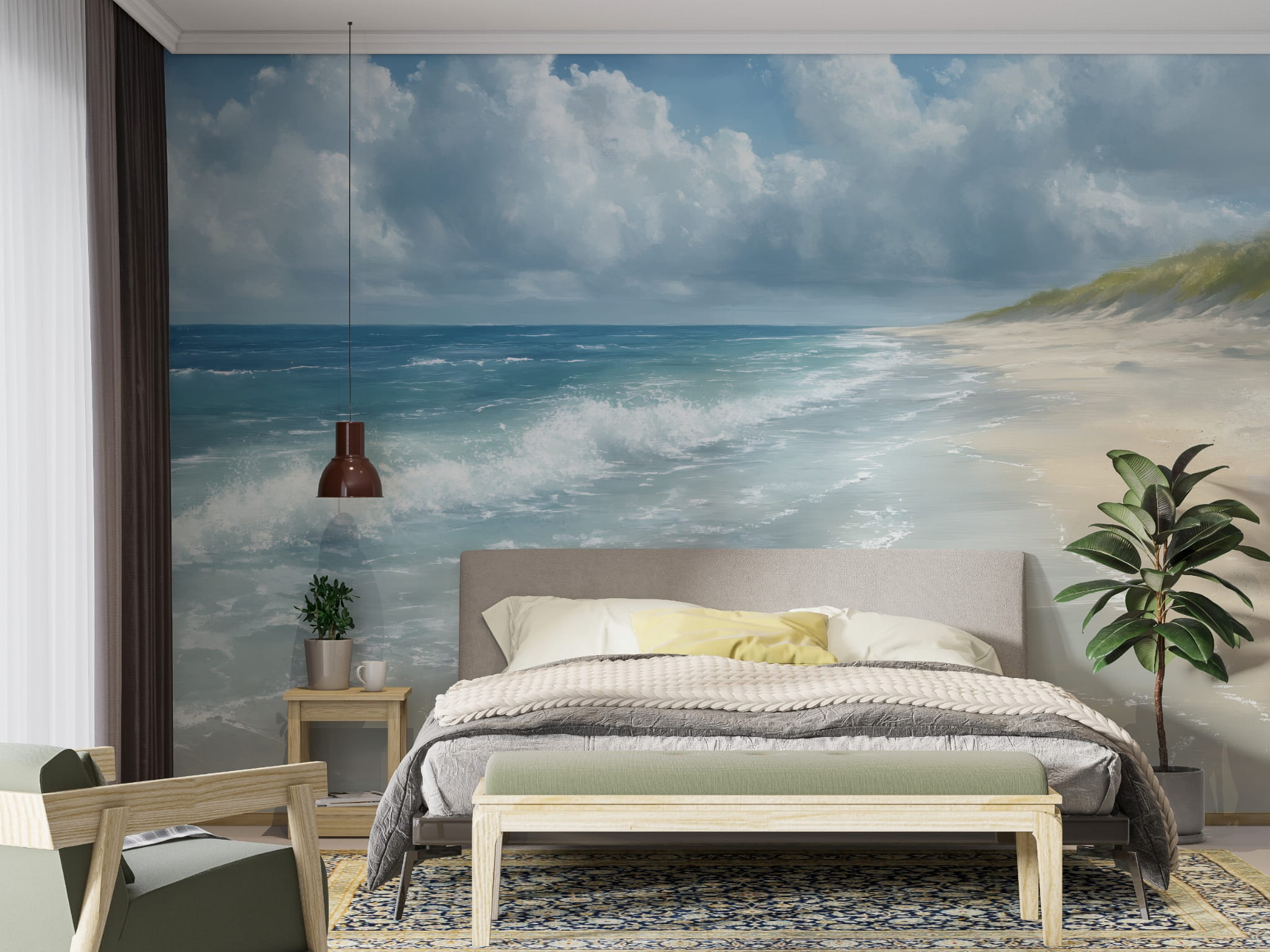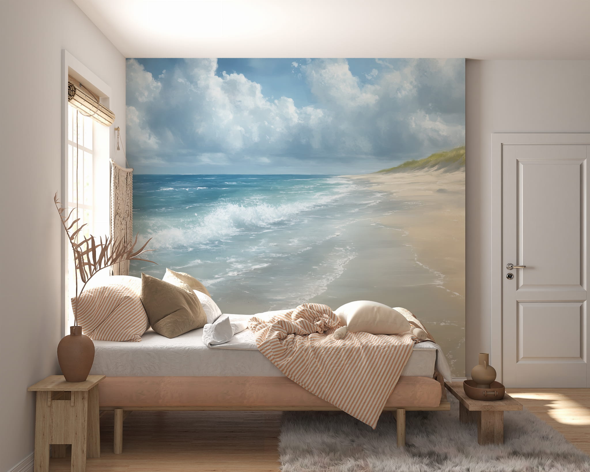 Fototapeta krajobraz Tapeta morska fale klif piasek plaża krajobraz akwarela pejzaż na wymiar